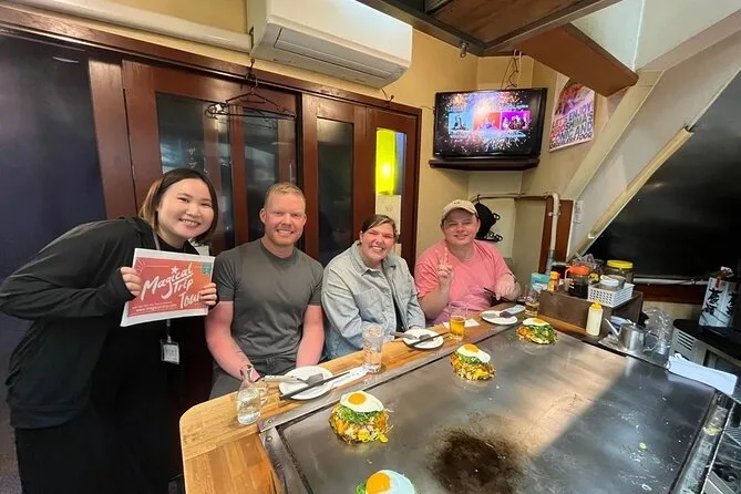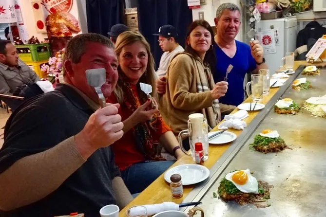 Dein Abend startet mit dem Treffen deines lokalen Guides in zentraler Lage in Hiroshima, danach gibt’s drei Getränke deiner Wahl, einen frisch zubereiteten Okonomiyaki direkt am Tisch, zwei weitere Gerichte zum Teilen in Izakayas der Nachbarschaft und Gruppenfotos unterwegs – alles endet vor Mitternacht, damit du bequem mit den öffentlichen Verkehrsmitteln zurückkommst.