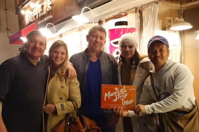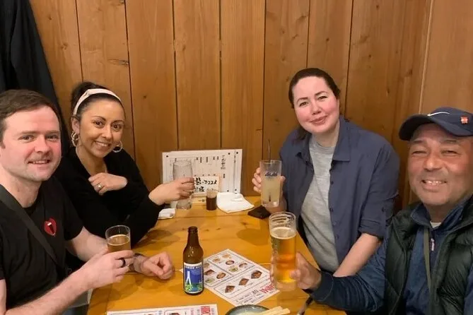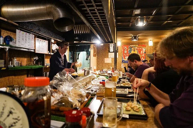 Beim dritten Halt waren meine Stäbchen-Fähigkeiten schon besser (ein bisschen), und wir hatten ein paar lokale Redewendungen von Yuki gelernt, die ich bis zum Morgen sicher wieder vergessen habe. Es hat etwas Besonderes, mit Fremden Schulter an Schulter zu sitzen, die nach ein paar Drinks plötzlich gar nicht mehr so fremd wirken. Die Nachtluft war kühl, aber nicht kalt; jemand zeigte Fotos vom Tourbeginn, und wir sahen alle viel glücklicher aus, als wir es damals realisierten. Also ja – wenn du auf der Suche nach einem schicken „Foodie“-Erlebnis bist, ist das hier nichts für dich. Aber wenn du essen willst, was die Einheimischen lieben, und dabei vielleicht auch über dich selbst lachen kannst… dann bist du hier genau richtig.