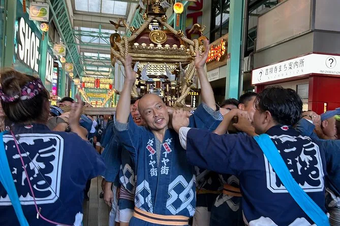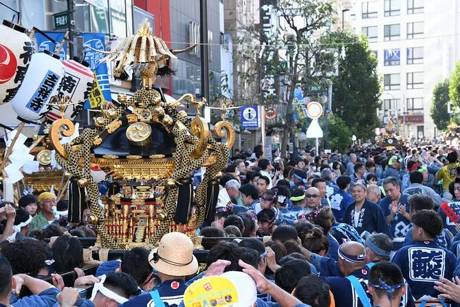 Dein Tag wird von einem professionellen lokalen Guide begleitet, der dir hilft, die Mikoshi mitzutragen (inklusive traditioneller Jacke), den Musashino Hachimangu-Schrein zeigt und dich durch die festlichen Straßen von Kichijoji führt – die Anreise mit öffentlichen Verkehrsmitteln ist unkompliziert.