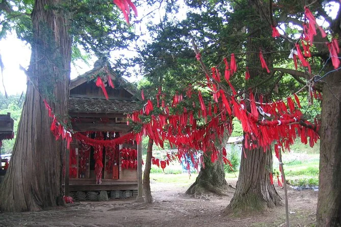 Sie spazieren entlang stiller Bäche, die von Kappa-Geistern bewohnt sein sollen, binden Wünsche an Liebesschreinen und betreten jahrhundertealte Bauernhäuser – all das mit Geschichten, die Ihr lizenzierter lokaler Guide lebendig werden lässt. Diese Tour gibt Ihnen die Freiheit, Ihr eigenes Abenteuer in Tonos Welt voller Folklore und Tradition zu gestalten.