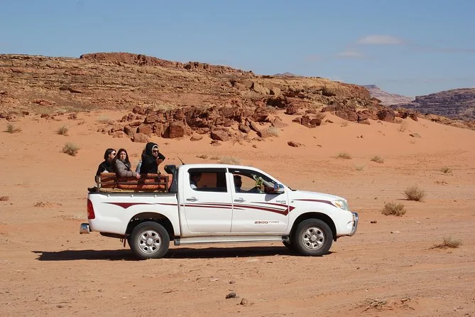 Deine Eintrittskarten für Petra und Wadi Rum sind inklusive, ebenso der private Transport mit englischsprachigem Fahrer. In Petra begleitet dich ein lizenzierter lokaler Guide, in Wadi Rum erwartet dich eine 2-stündige Jeep-Tour mit Beduinenfahrern. Das Mittagessen ist als Buffet inklusive. Abholungen sind flexibel möglich – vom Hotel, Hafen, Grenzübergang oder Flughafen. In der kühleren Jahreszeit tauschen wir eventuell die Reihenfolge, damit du an beiden Orten genug Tageslicht hast.