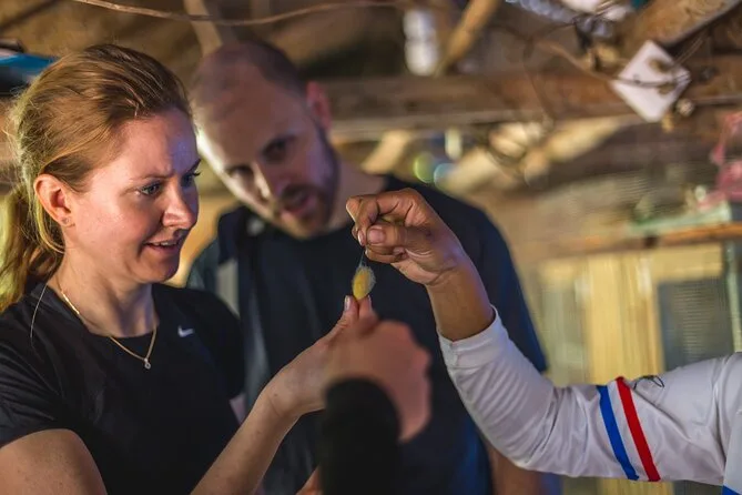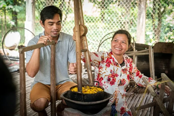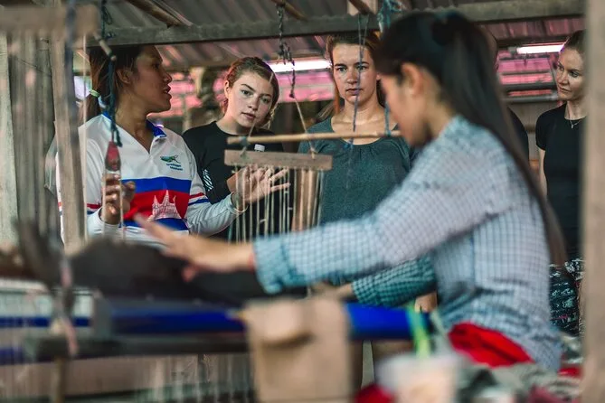 Du radelst von Phnom Penh mit der Fähre über den Mekong und durch ruhige Dörfer auf den Seideninseln. Triff lokale Familien auf einer Seidenfarm, probier dich im Weben aus (wenn du magst) und genieße ein frisches Khmer-Mittagessen, bevor es mit dem Boot zurückgeht. Lachen, ehrliches Essen und unvergessliche Momente inklusive.