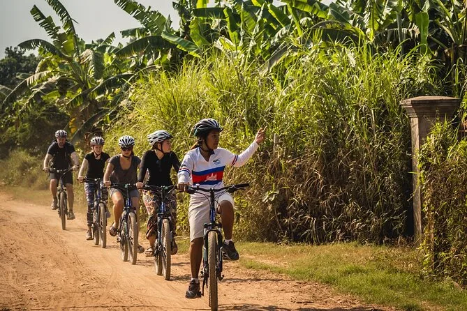 Dein Tag umfasst die Mountainbike-Ausleihe und Helm-Anpassung am Areiksart-Fährhafen in Phnom Penh, alle Fährfahrten über den Mekong zu den Inseln, Wasser und Snacks unterwegs, einen englischsprachigen lokalen Guide, Eintritt zu kulturellen Stopps inklusive einer praktischen Führung auf einer familiengeführten Seidenfarm mit Erfrischungen, sowie ein großzügiges traditionelles Khmer-Mittagessen, bevor du am frühen Nachmittag mit der Fähre zurück nach Phnom Penh fährst.