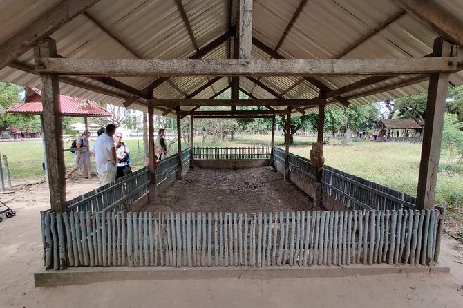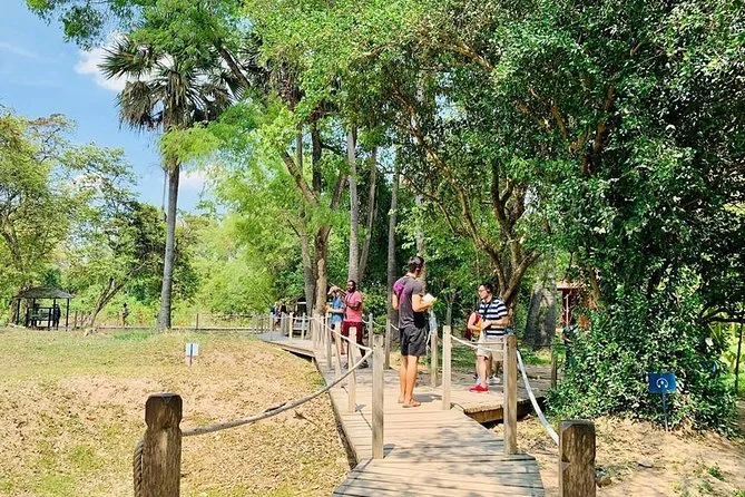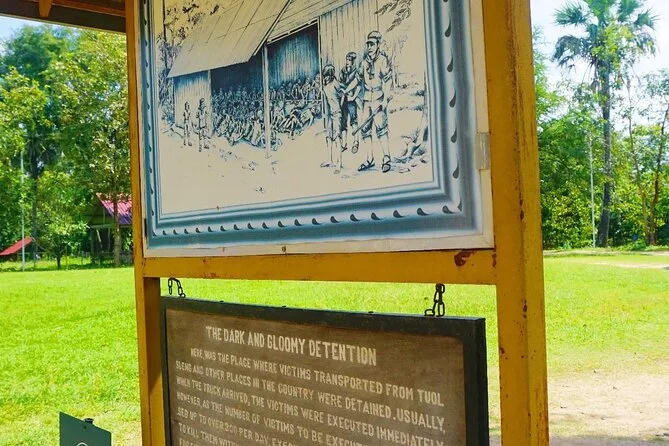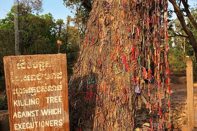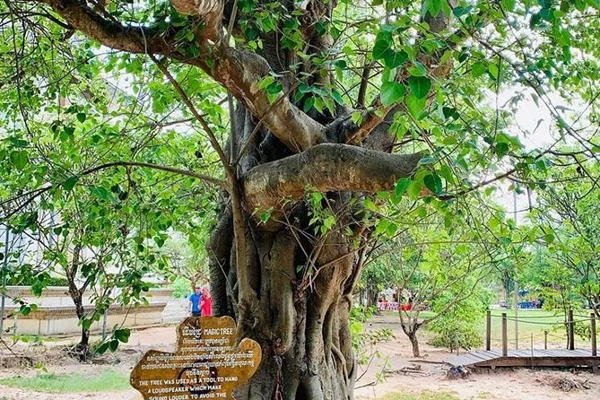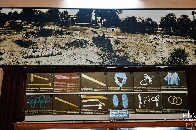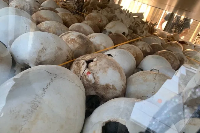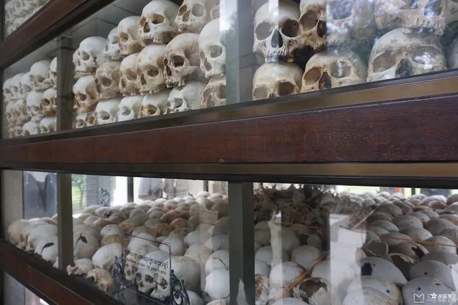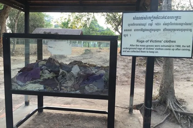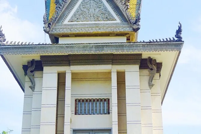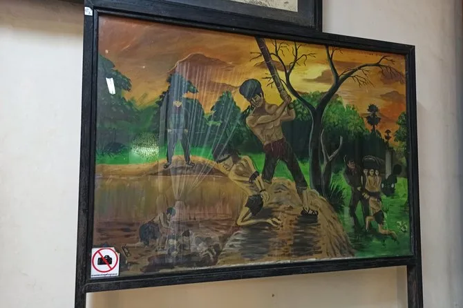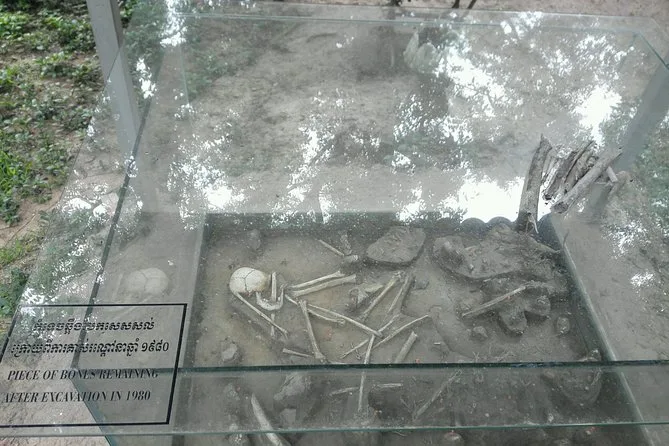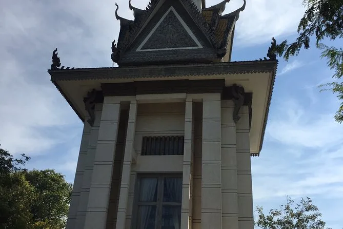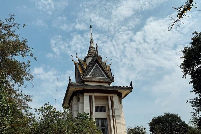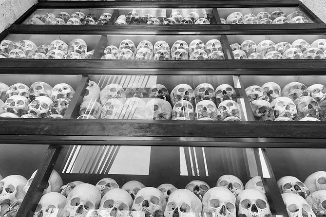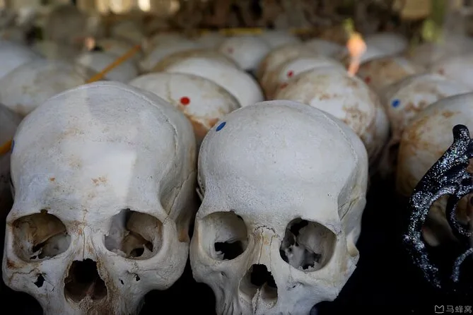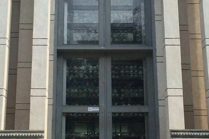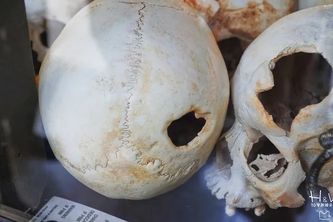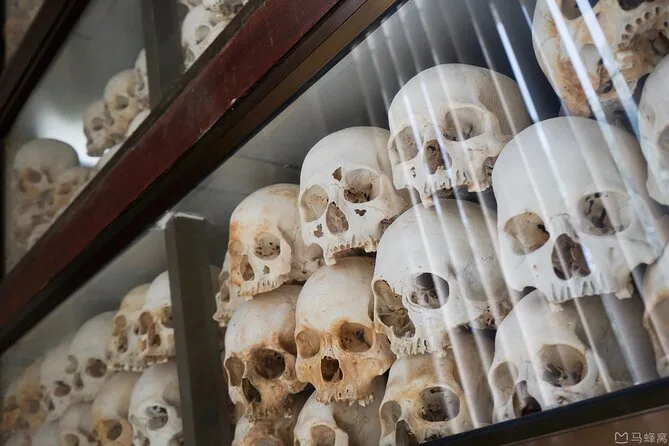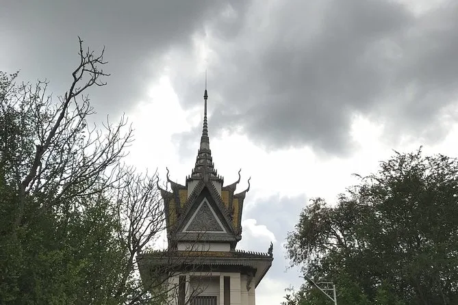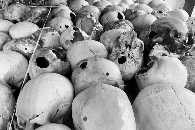 Der Nachmittag wurde ernster. Das Tuol Sleng Genozid-Museum ist kein leichter Ort – ehemalige Klassenzimmer wurden zu Gefängniszellen, verblasste Fotos hängen an den Wänden. Dara ließ uns Zeit, in Ruhe zu gehen, ohne zu hetzen. Danach fuhren wir zu den Killing Fields von Choeung Ek – Vogelgezwitscher und Sonnenlicht kontrastieren mit Glasvitrinen voller Schädel, die einen erstarren lassen. Worte können kaum beschreiben, was man dort fühlt. Zum Glück war Dara da, um Fragen zu beantworten, ohne dass es wie ein trockener Geschichtsunterricht wirkte.