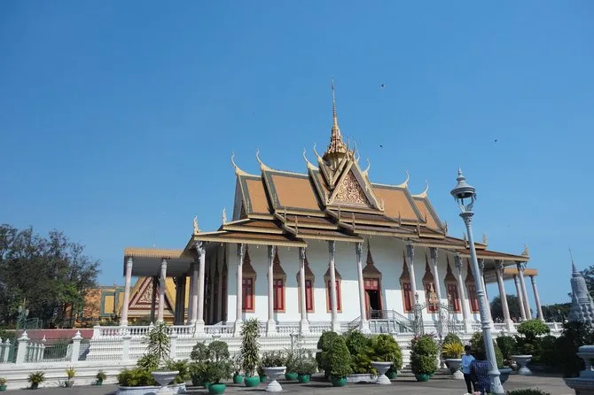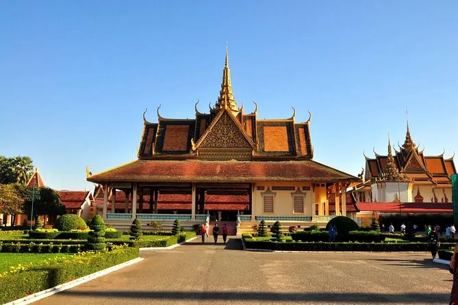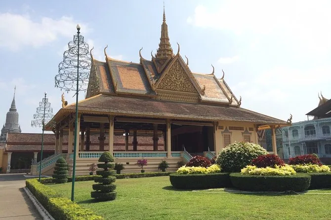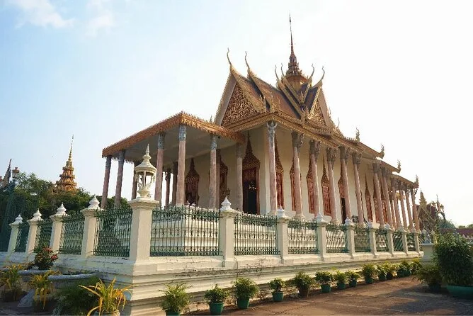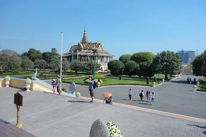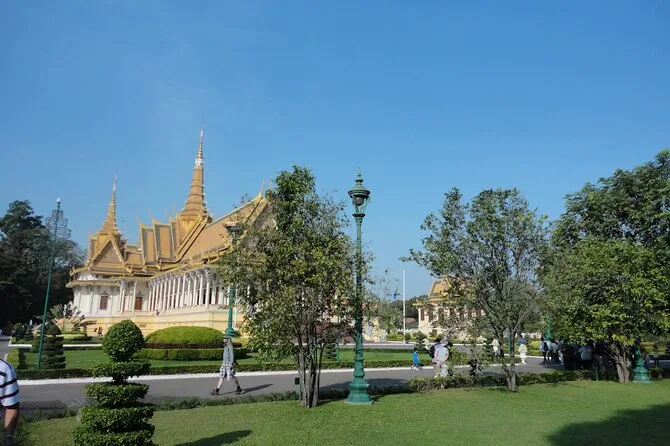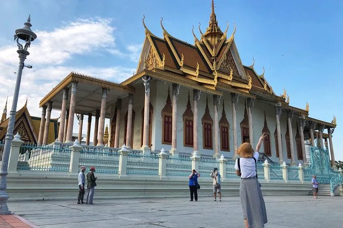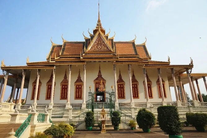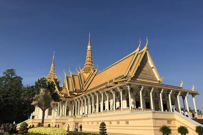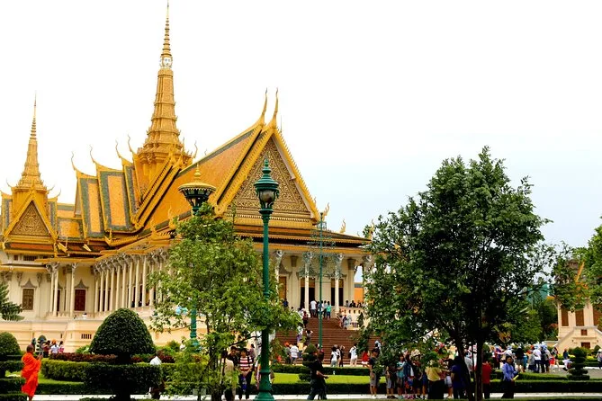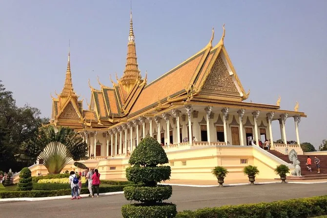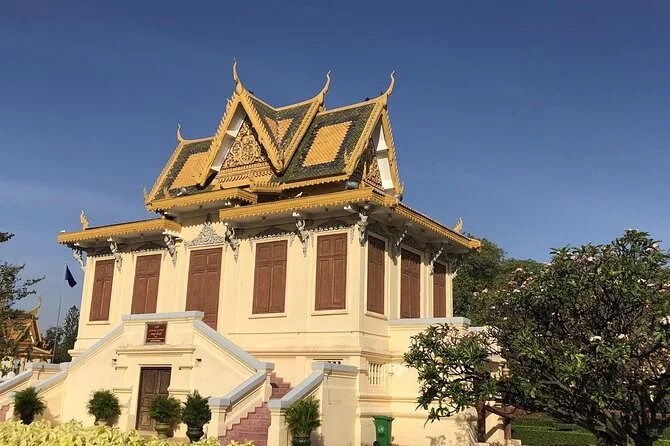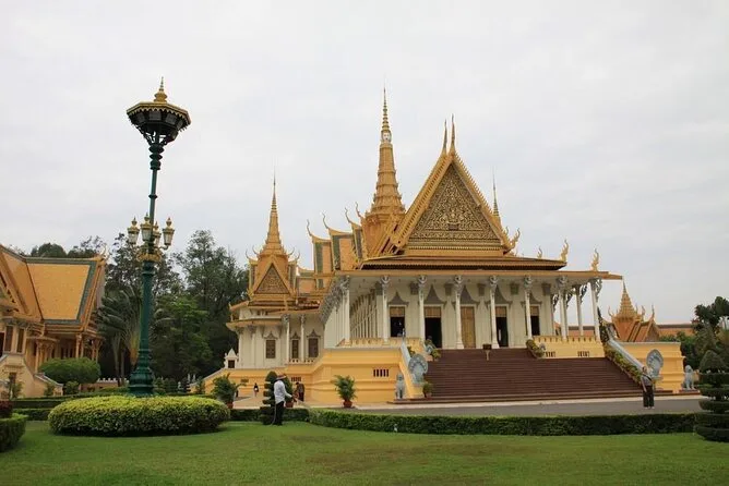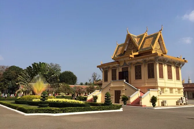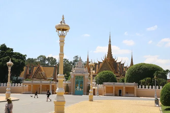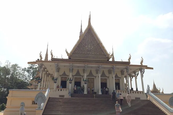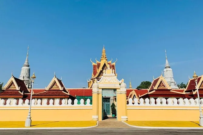 Dein Tag beinhaltet die Abholung und Rückfahrt zum Hotel mit komfortablem Transport, Eintritt zu allen genannten Sehenswürdigkeiten wie dem Königspalast und Tuol Sleng Museum, gekühltes Wasser unterwegs, ein traditionelles kambodschanisches Mittagessen in einem lokalen Restaurant sowie die Begleitung durch einen lizenzierten lokalen Experten, bevor du abends zurück ins Hotel gebracht wirst.