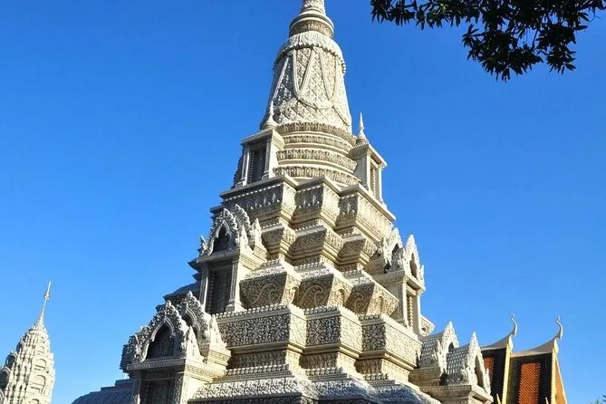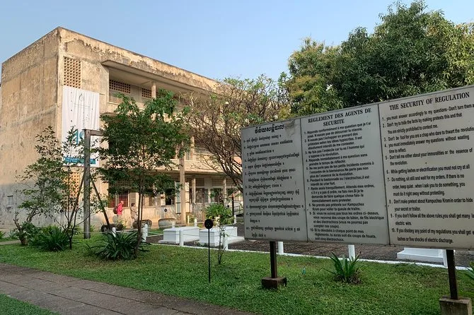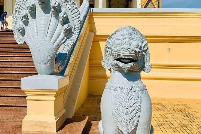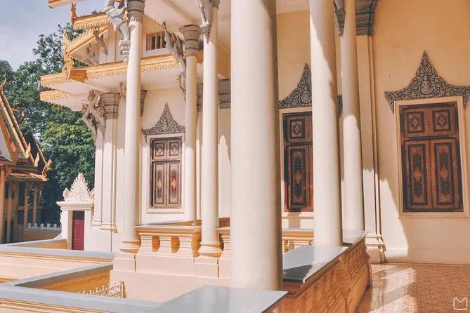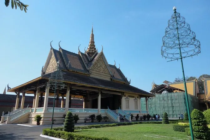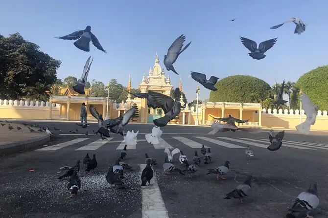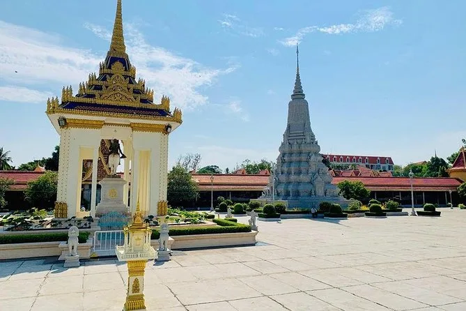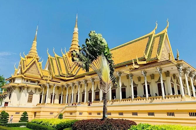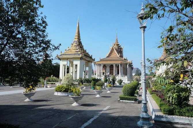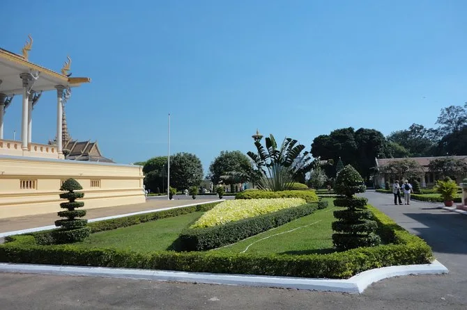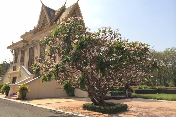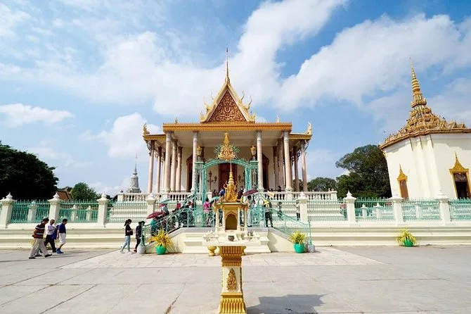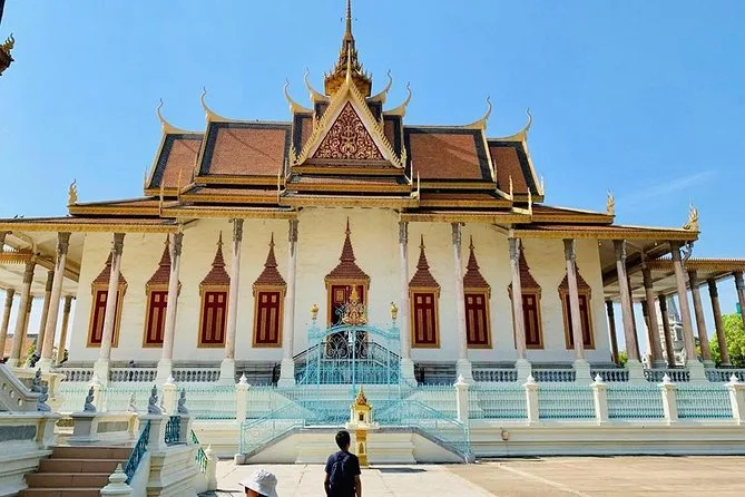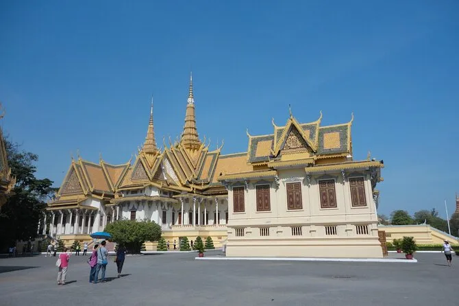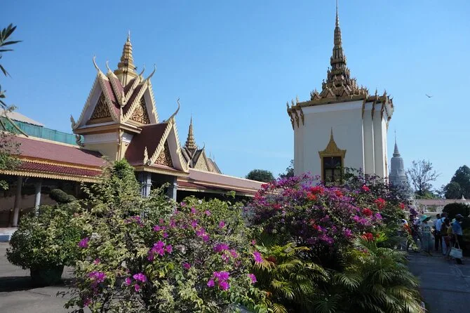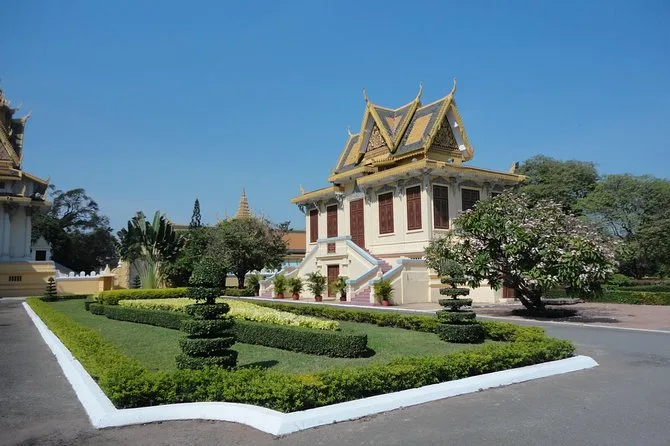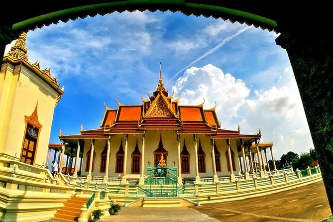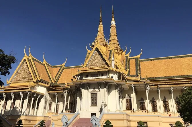 Dein Tag beinhaltet die Abholung und Rückfahrt zum Hotel mit komfortablem Transport, Eintritt zu allen genannten Sehenswürdigkeiten wie dem Königspalast und Tuol Sleng Museum, gekühltes Wasser unterwegs, ein traditionelles kambodschanisches Mittagessen in einem lokalen Restaurant sowie die Begleitung durch einen lizenzierten lokalen Experten, bevor du abends zurück ins Hotel gebracht wirst.