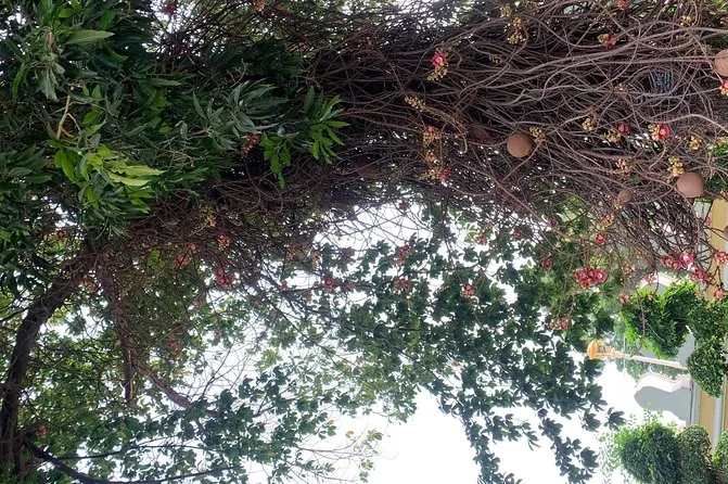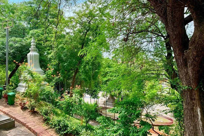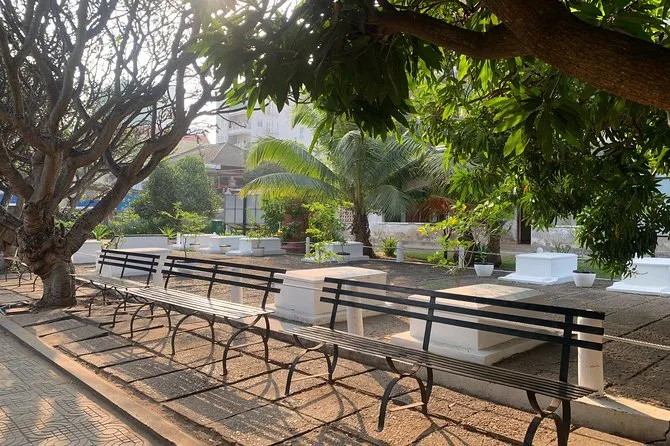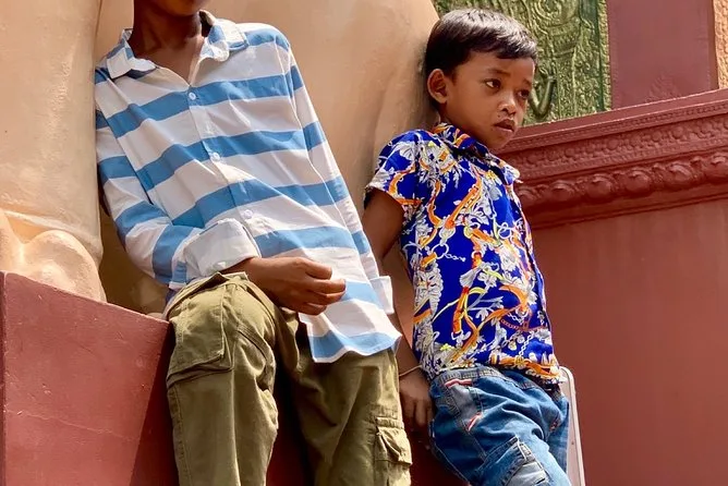 Als Nächstes erklommen wir den Wat Phnom, einen kleinen Hügel mitten in der Stadt. Dara erzählte von Lady Penh, der Namensgeberin der Stadt, während Kinder um die Stupa herum spielten. Die Aussicht ist nicht spektakulär, aber man sieht, wie lebendig Phnom Penh ist – Tuk-Tuks überall, Menschen, die an jeder Ecke Eiskaffee verkaufen. Zum Mittagessen hielten wir in einem lokalen Restaurant, wo ich zum ersten Mal Amok probierte – cremig, würzig und mit Kokosnuss, ich denke noch immer daran. An einem Nachbartisch lachte jemand so heftig, dass er schnaufte – da fühlte ich mich für einen Moment wirklich mitten im Leben der Stadt.