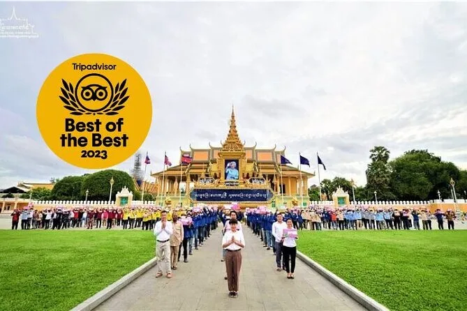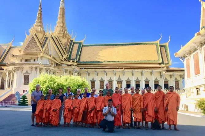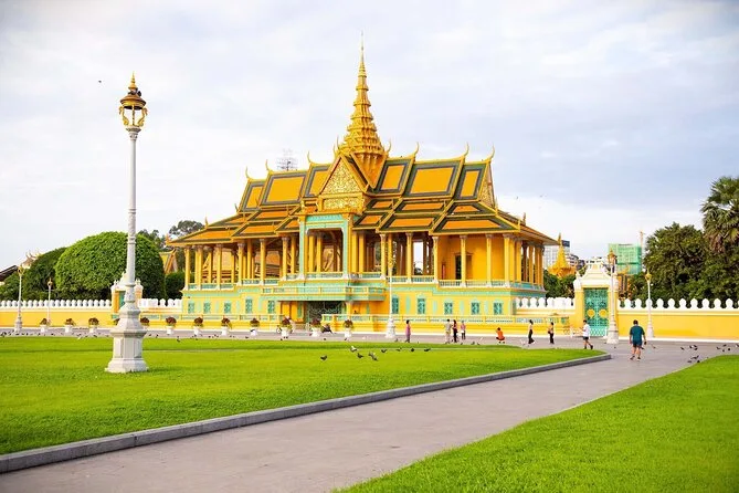 Dein Tag beinhaltet Hotelabholung und Rückfahrt im Stadtzentrum von Phnom Penh, Eintritt zu allen wichtigen Sehenswürdigkeiten wie Königspalast und Tuol Sleng Museum, komfortable Fahrten im privaten klimatisierten Fahrzeug, erfrischendes Wasser während der Pausen sowie die Begleitung eines erfahrenen, englischsprachigen und lizenzierten lokalen Guides, der persönliche Geschichten teilt.