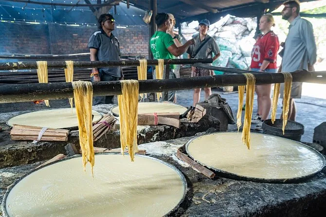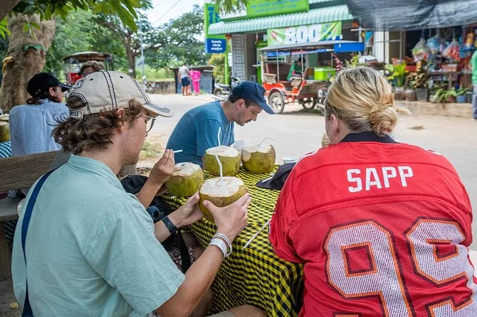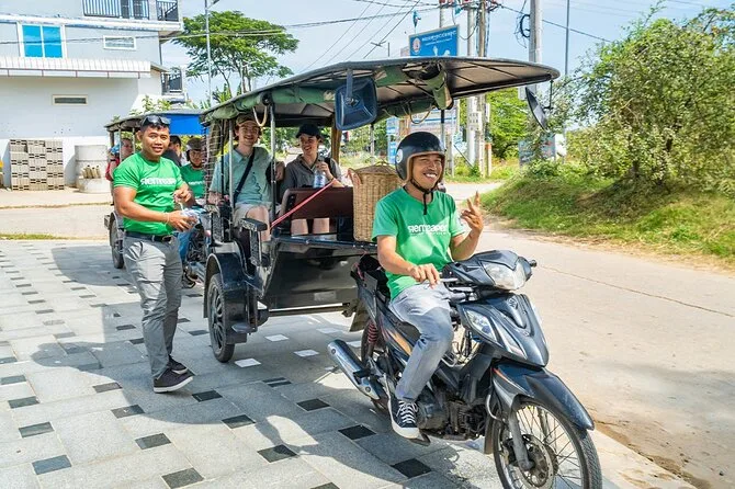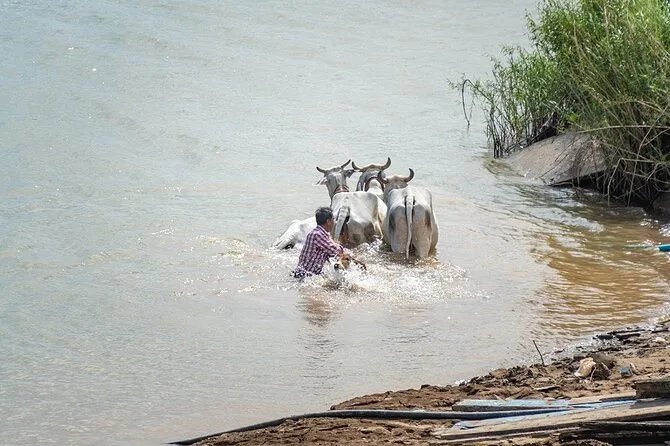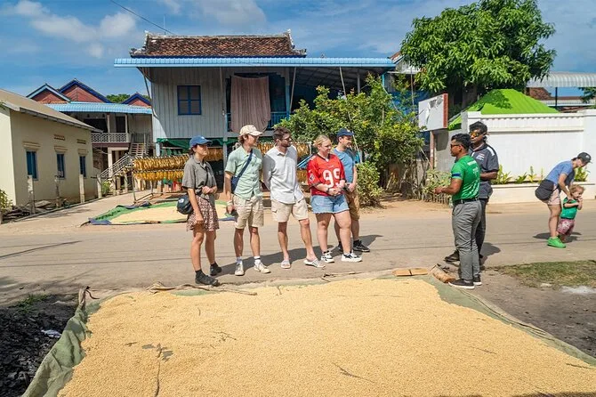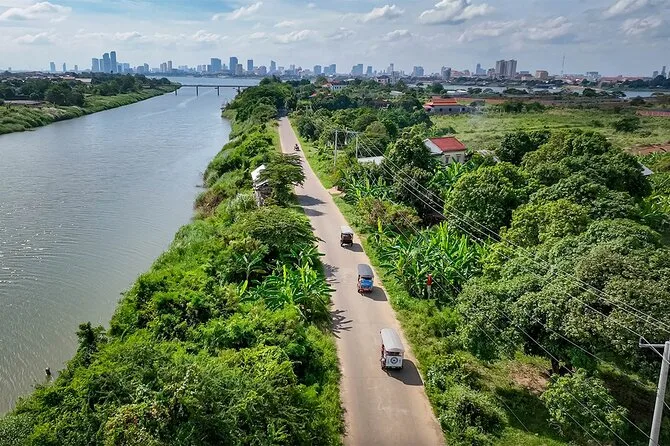 Dein Tag beinhaltet den Hoteltransfer in Phnom Penh, alle Fährenfahrten über den Mekong, Tuk-Tuk-Transport durch die Dörfer von Silk Island, kaltes Wasser, lokale Snacks, sowie einen englischsprachigen Guide, der dir Geschichten erzählt, die du so online nicht findest – bevor es gegen Mittag zurückgeht.