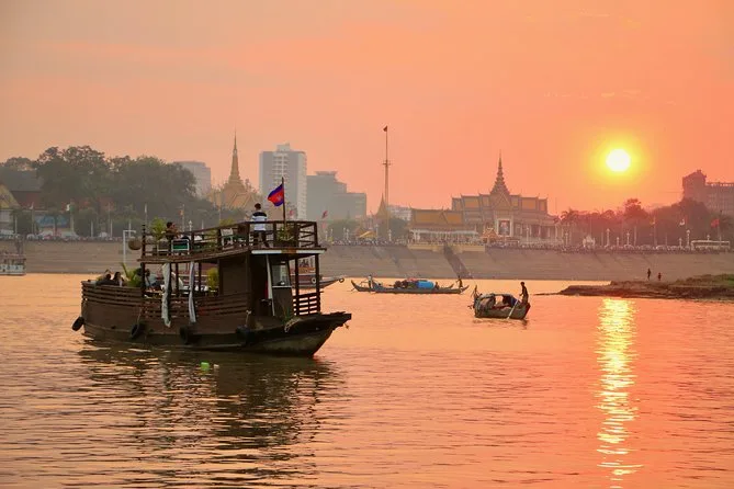 Ihr Abend beinhaltet den Transfer vom und zum Hotel in Phnom Penh, ein privates Boot für zwei Stunden auf den Flüssen Tonle Sap und Mekong mit einem englischsprachigen lokalen Guide. Unbegrenzt Bier, Softdrinks, eine frische Obstplatte sowie eine Flasche Wein werden serviert, während Sie das Leben an den Flussufern beobachten, bevor es zurück zum Hotel geht.