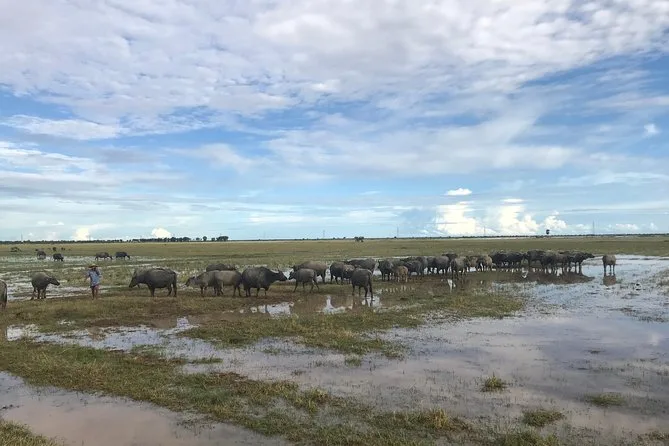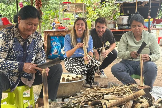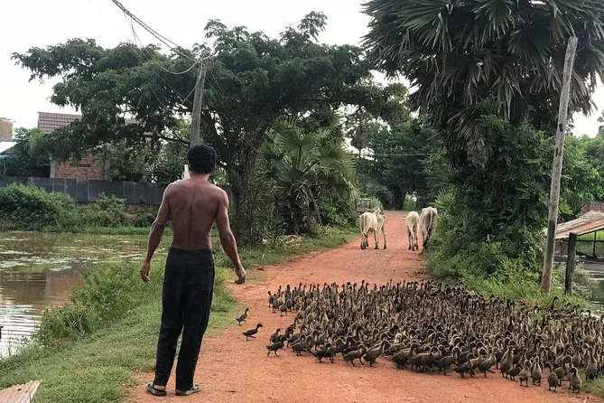 Mit offenem Jeep geht es ab Siem Reap raus ins Umland – begleitet von einem lokalen Guide. Du besuchst ein buddhistisches Kloster, triffst vielleicht Mönche, schlenderst durch Dorfgärten und genießt den Sonnenuntergang bei einem Drink in den Reisfeldern. Erwarte kleine Überraschungen und echte Momente – nicht nur Sehenswürdigkeiten, sondern Gefühle, die du mit nach Hause nimmst.