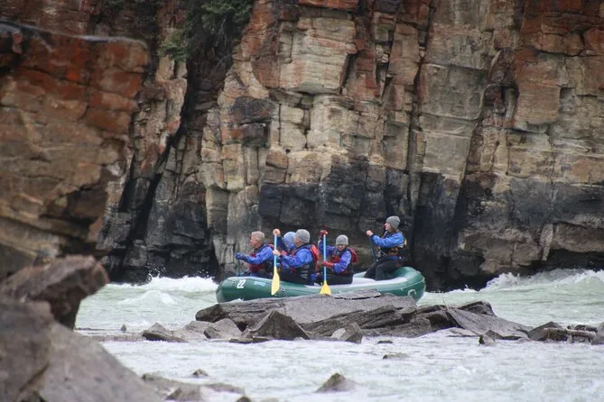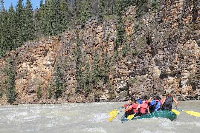 Dein Tag beinhaltet Abholung und Rückfahrt von ausgewählten Orten in Jasper, komplette Rafting-Ausrüstung wie Neoprenanzüge und Helme (die sehen ehrlich gesagt alle ziemlich lustig aus), die GST-Steuer sowie spannende Live-Kommentare vom Guide, während du 15 Kilometer durch lebhafte Stromschnellen und ruhige Flussabschnitte paddelst, bevor es gemeinsam zurück in die Stadt geht.
