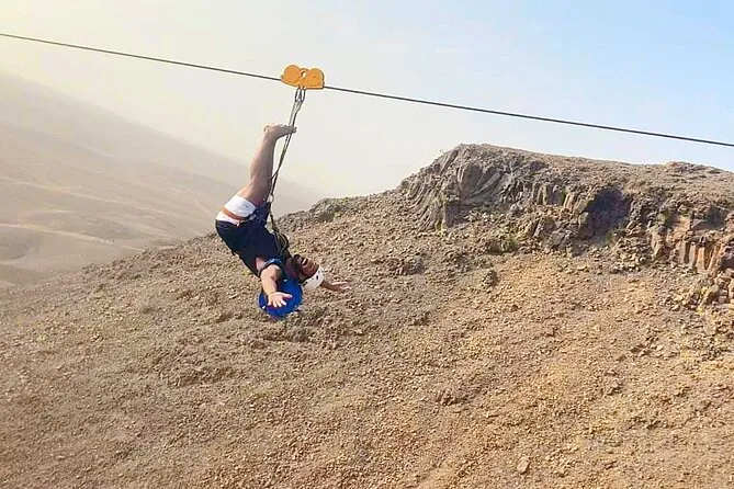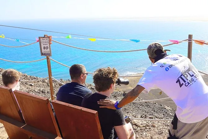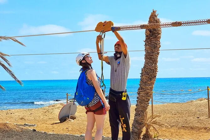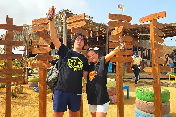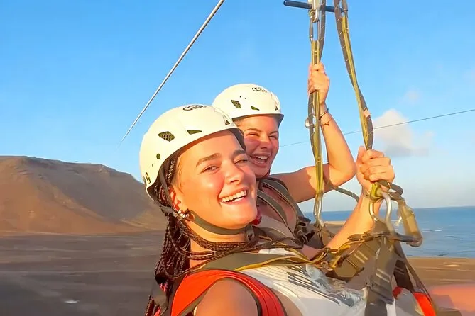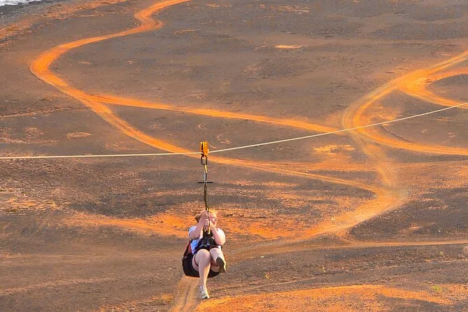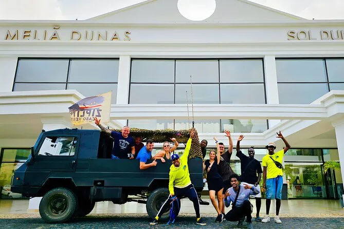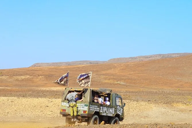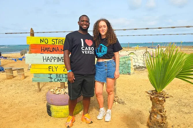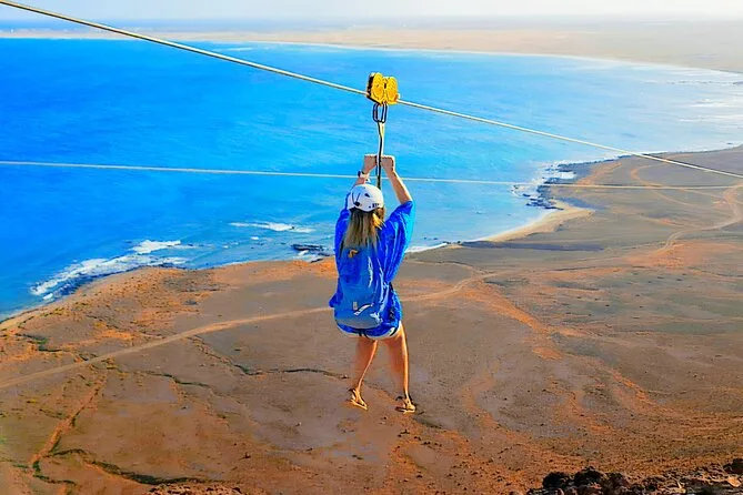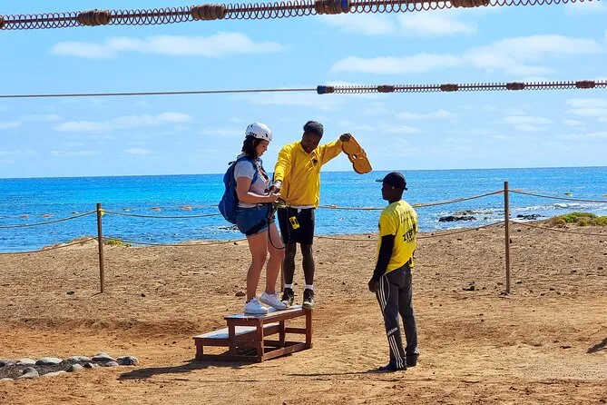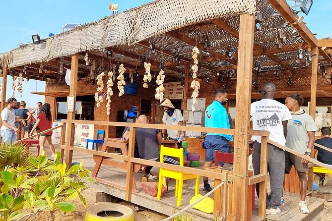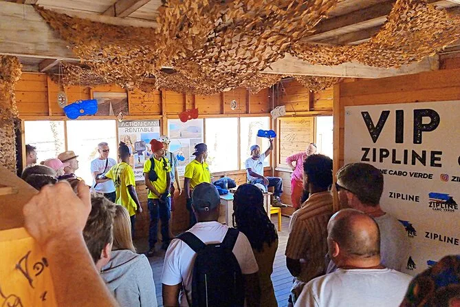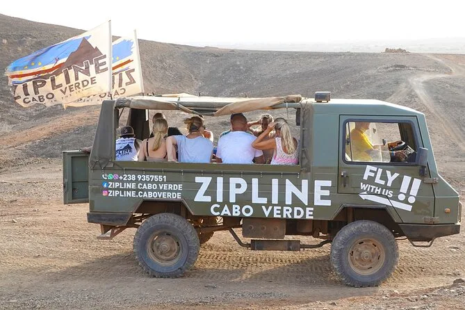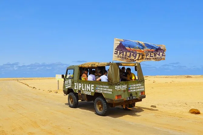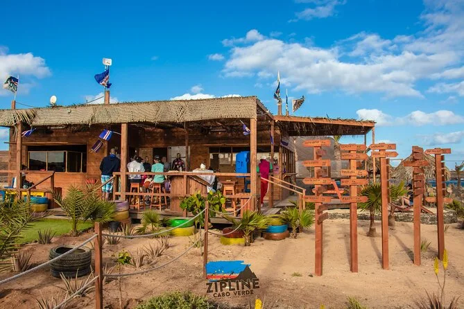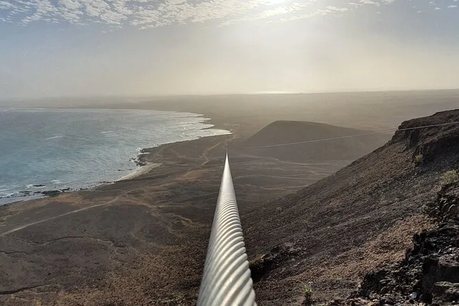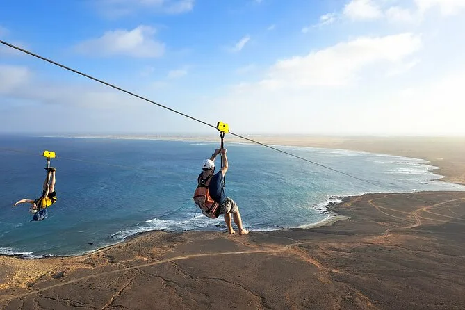 Dein Tag umfasst die Abholung mit dem 4x4 in Santa Maria oder deinem Aufenthaltsort, alle nötigen Zipline-Ausrüstungen wie Helm und Gurte, ein Glas lokalen Aperitif 100 Meter über dem Meer sowie kapverdische Livemusik und Tanz, bevor du entspannt zurückkehrst.