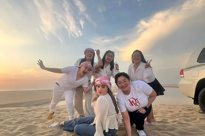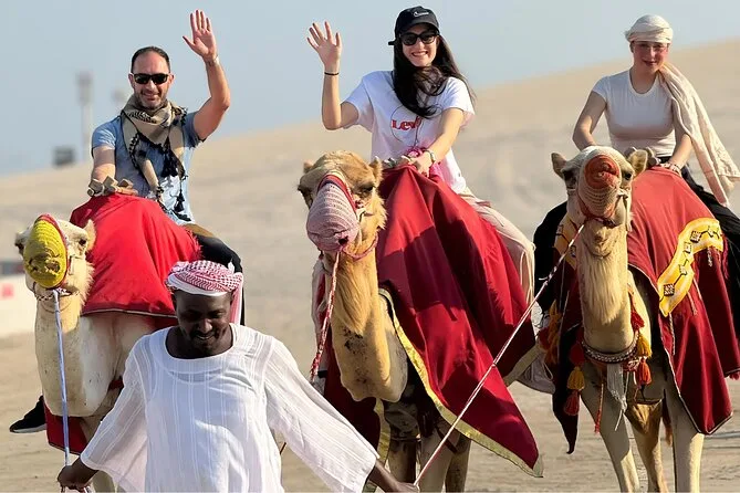 Rase mit einem 4x4 über die Dünen bei Doha, probiere Kamelreiten mit würzigem Tee, wage dich ans Sandboarding auf sanften Hängen und halte am Inland Sea, wo goldener Sand auf blaues Wasser trifft. Mit Abholung und lokalem Guide erlebst du Adrenalin und ruhige Momente, die lange im Gedächtnis bleiben.