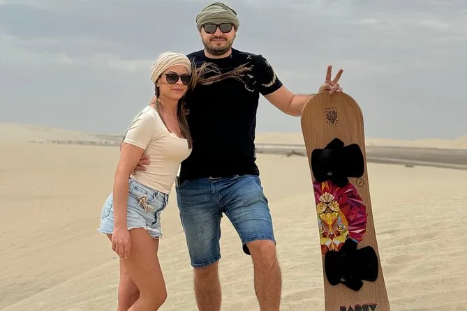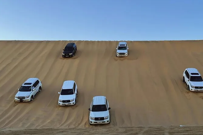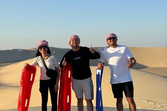 Dein Tag beinhaltet Abholung und Rückfahrt von deinem Standort in Doha im klimatisierten 4x4, Wasserflaschen, arabischen Kaffee oder Tee beim Kamelritt (wenn gebucht), alle Steuern und Gebühren sowie geführtes Dune Bashing und Sandboarding, bevor es zurück in die Stadt geht.