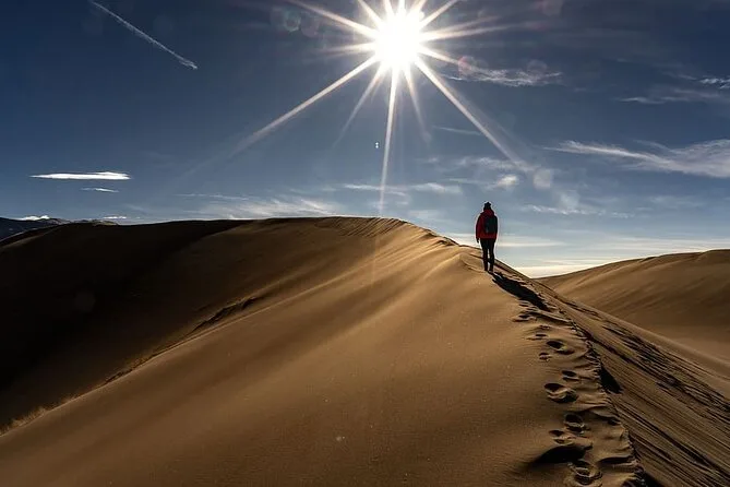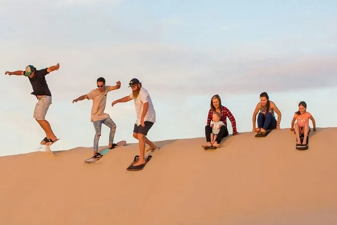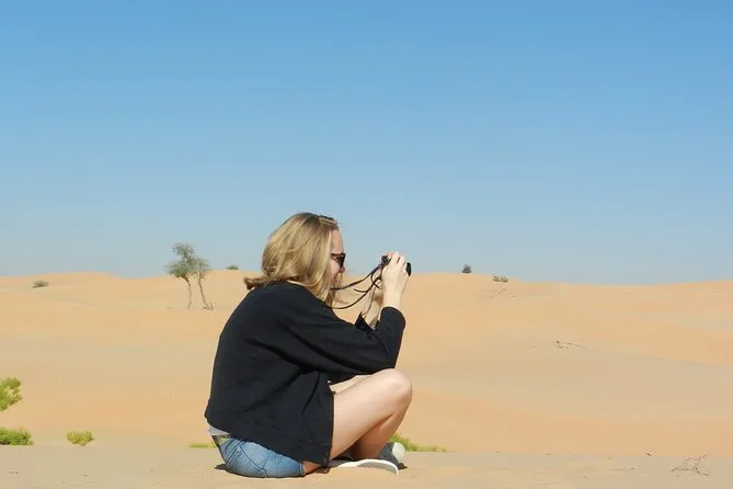Du erlebst Dünenfahrten im 4x4, Sandboarding, Kamelritte mit Fotomöglichkeiten (gegen Aufpreis), triffst einen Falken, genießt traditionellen Tee und schwimmst am Inland Sea.
