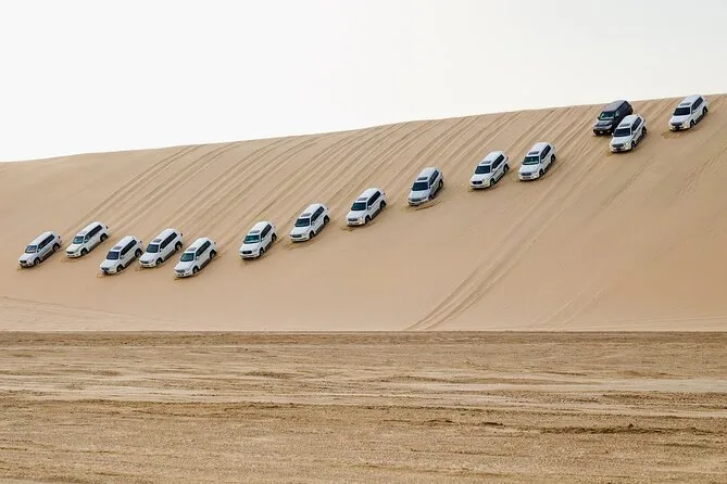 Dein Tag beinhaltet privaten klimatisierten Transfer mit Abholung vom Hotel oder deinem Wunschort in Doha, Wasserflaschen unterwegs, aufregendes Dünenfahren im 4x4 Toyota mit erfahrenem lokalen Guide, Pausen für traditionellen Tee oder Kaffee in der Wüstenluft (manchmal mit Kamelritten oder Falken-Fotos), Sandboarding auf echten Dünen und schließlich einen Abstecher zum Khor Al Adaid – dem Inland Sea – wo du noch schnell schwimmen kannst, bevor es zurück in die Stadt geht.