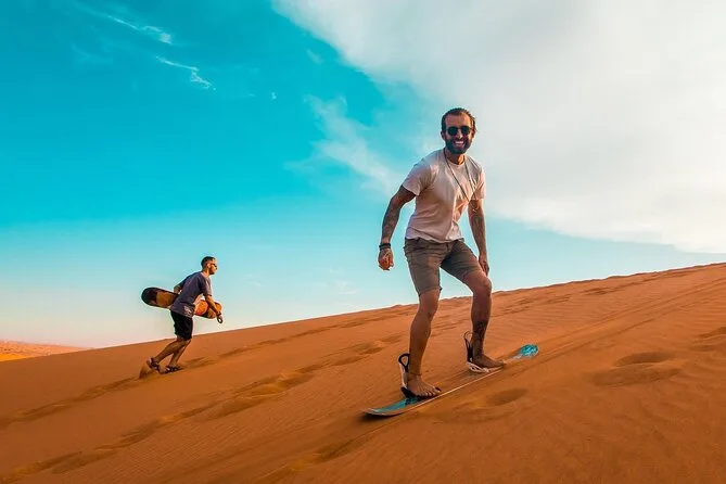 Die Tour umfasst Quadfahren (ATV), optional Dune Buggy fahren, optional Kamelreiten, Sandboarding, Dune Bashing im 4x4 und einen Stopp am Inland Sea.
