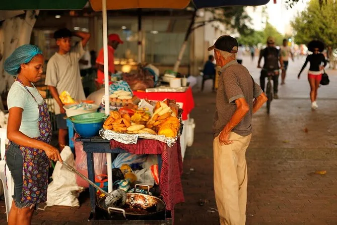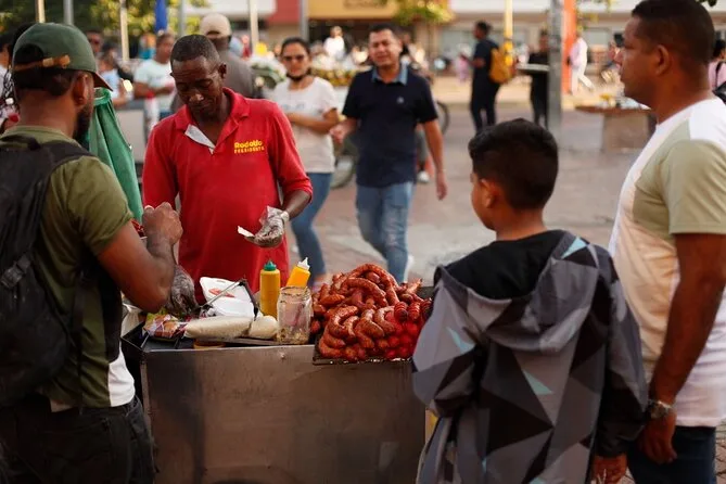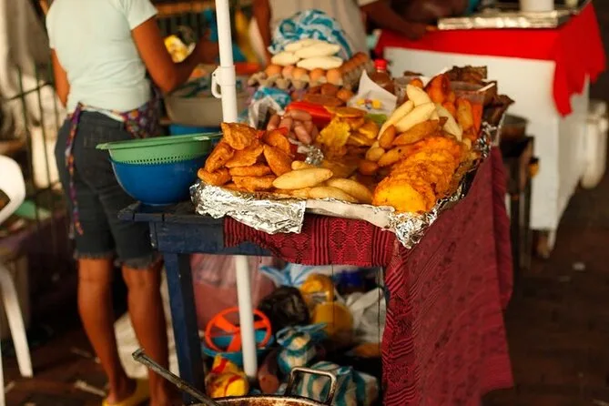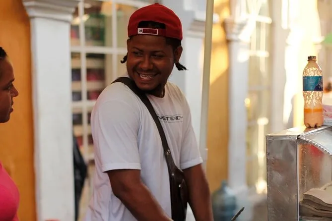 Erkunde Cartagenas Altstadt mit einem lokalen Guide, koste acht verschiedene Street Foods wie Arepas und Patacones, entdecke lebendige Plätze und erfahre spannende Geschichten an jeder Ecke. Freu dich auf Lacher wegen Sprachpannen, klebrige Finger von fruchtigen Süßigkeiten und Momente, in denen Geschichte zum Greifen nah ist – Erinnerungen, die du lange mit nach Hause nimmst.