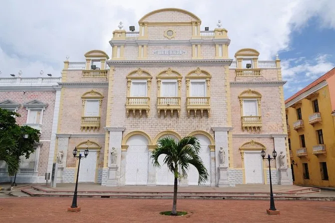 Bevor wir zurückgingen, hielten wir für Fotos vor dem Teatro Adolfo Mejía – dem Heredia Theater – dessen pastellfarbene Fassade das späte Morgenlicht perfekt einfing. Die gesamte Tour dauerte etwa vier Stunden, fühlte sich aber ehrlich gesagt wie ein Crashkurs in Cartagenas Seele an. Wir kehrten müde, aber mit breitem Grinsen und vielleicht ein bisschen sonnenverbrannt ins Hotel zurück.