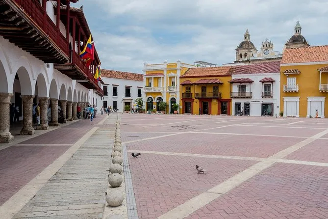 Das Erste, was mir auffiel, als ich aus dem Auto stieg, war die warme, salzige Luft – Cartagena vergisst nie, dass man am Meer ist. Unser Guide Andrés erwartete uns direkt unter den gelben Bögen des Torre del Reloj. Er hatte dieses Talent, kleine Geschichten über den Uhrturm und die Plaza de la Aduana einzuflechten – zum Beispiel, wie die Einheimischen sich immer noch darüber streiten, welche Bäckerei die besten Arepas in der Nähe macht. Der Platz war um 9 Uhr morgens schon lebendig, Händler bauten ihre Obststände auf und Kinder jagten Tauben hinterher.