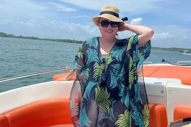 Kaum hatte ich meinen Kaffee ausgetrunken, wurden wir schon zum Boot am Pier von Cartagena gebracht – unser Guide Andrés machte schon Witze auf Spanisch und Englisch. Die Stadt verschwand schnell hinter uns, stattdessen spürten wir den salzigen Wind und rochen diesen süßlichen Duft, den man nur in Mangroven findet. Erster Halt war bei Tierra Bomba. Wir trieben im Wasser, während Andrés auf die alten Festungen San Fernando und San José zeigte und Geschichten von Piraten und Kanonen erzählte. Ich versuchte, mir alles vorzustellen, doch vor allem spürte ich die Sonne im Gesicht und das Spritzwasser auf den Armen. Es war lauter als gedacht, mit Musik von anderen Booten, die herüberwehte.