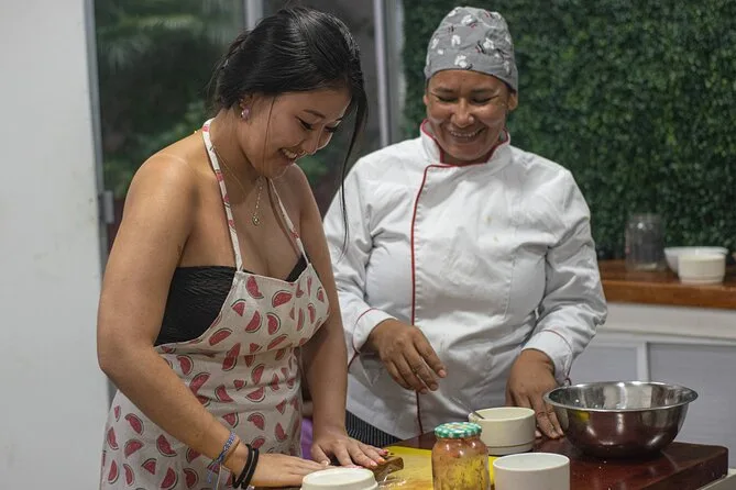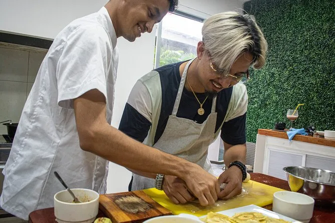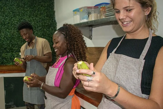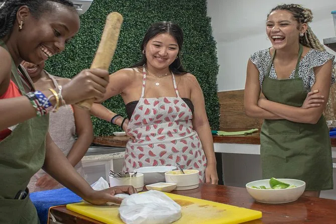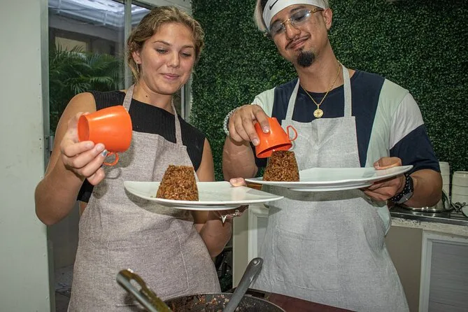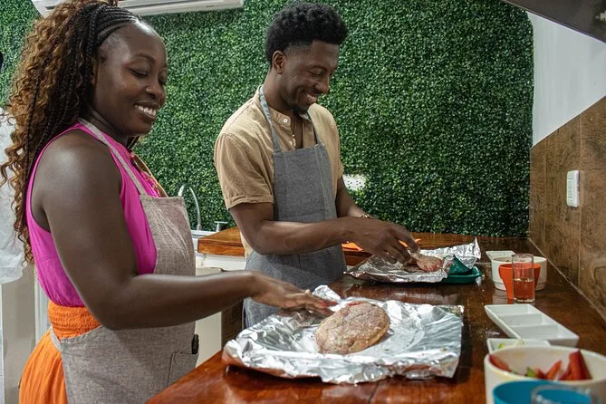 Dein Tag beinhaltet praktische Anleitung von zwei Profi-Köchen in ihrer familiengeführten Restaurantküche in Cartagenas Altstadt; alle Zutaten für Kokosreis, Mojarra roja, Patacones, Empanadas; Tanzpausen; und ein gemeinsames Essen am Familientisch nach dem Kochen.