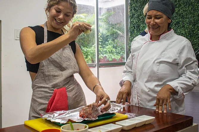 Du tauchst ein in die echte Küche eines Familienrestaurants in Cartagena, kochst Kokosreis und Mojarra roja mit lokalen Köchen, tanzt zur karibischen Musik während der Fisch brät und teilst Geschichten bei Empanadas und Patacones am Familientisch. Lachen, klebrige Finger und vielleicht neue Freunde inklusive.