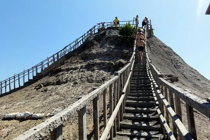 Dein Tag umfasst den Eintritt zum Totumo Schlammvulkan mit Betreuung durch Einheimische im Krater, Wasserflaschen während der Fahrt, klimatisierte Transfers vom Stadtzentrum Cartagenas zu den Stationen und ein traditionelles Küsten-Mittagessen mit gebratenem Fisch, Kokosreis und Patacón direkt am Strand von Manzanillo del Mar, bevor es am Nachmittag zurückgeht.