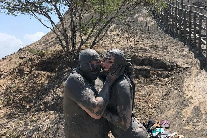 Schwebe im warmen Schlamm des Totumo Vulkans bei Cartagena, spüle dich ab und genieße ein traditionelles Fisch-Mittagessen direkt am Strand von Manzanillo del Mar. Mit viel Lachen, lokalen Geschichten vom Guide und der sanften karibischen Brise – ein Erlebnis, das du nie vergisst, wenn du das nächste Mal Sand zwischen den Zehen spürst.