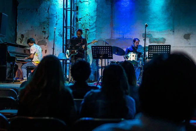 Der letzte Halt war ein Haus von Musica Corriente – halb Galerie, halb Konzertlocation, halb Küche. Überall hing Kunst: Poster, die von Backsteinwänden abblätterten, jemand zeichnete in einer Ecke. Wir erwischten eine Band beim Aufwärmen; der Soundcheck ließ mein Glas leicht vibrieren. Das Essen roch nach Koriander und gebratenem Maismehl – nichts Besonderes, aber genau das Richtige nach zwei Bieren. Ich hätte nicht erwartet, mich in solchen Orten so wohl zu fühlen, wo jeder scheinbar jeden beim Namen kennt.