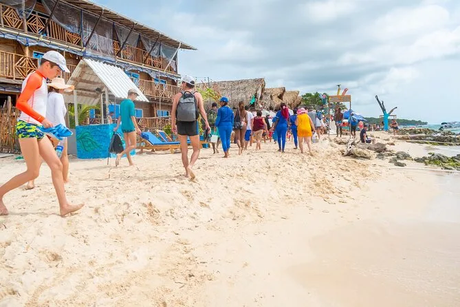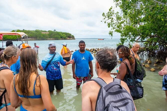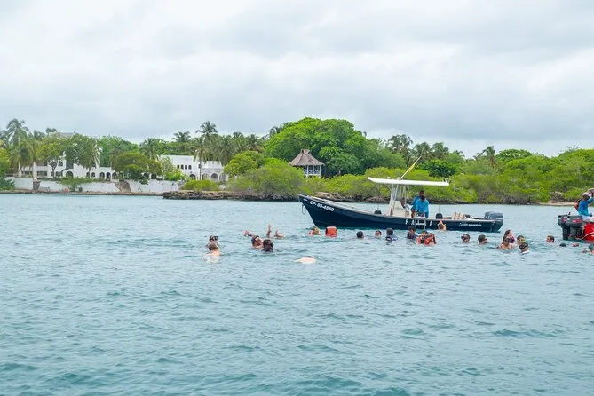 Dein Tag beinhaltet die Abholung aus zentralen Vierteln Cartagenas wie San Diego oder Getsemaní sowie alle Bootsfahrten zwischen den Inseln. Schnorchelausrüstung ist inklusive, ebenso ein Meeresfrüchte-Cocktail auf Isla Cholon und frisches Obst auf Isla Agua Azul. Das Mittagessen auf Playa Tranquila (Huhn, Fisch oder vegetarisch) ist ebenfalls dabei. Nach dem magischen Plankton-Schwimmen erhältst du einen Snack, bevor es zurück in die Stadt geht – alles begleitet von freundlichen Einheimischen, die die Gewässer wie ihre Westentasche kennen.