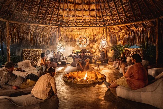 Die Feuer- und Kakaozeremonie startet gegen 18:30 Uhr, passend zum Sonnenuntergang.