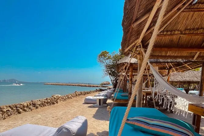 Dein Tag beinhaltet den privaten Bootstransfer von Cartagena zur Insel Tierra Bomba und zurück; alle geplanten Wellness-Aktivitäten wie die Yogastunde um 11 Uhr, die geführte Meditation unter dem heiligen Baum um 15 Uhr, eine 30-minütige Aromatherapie-Massage; Zugang zu den Strandanlagen mit Hütten, Hängematten und Liegestühlen; Nutzung von Handtuch und Yogamatte; sowie ein Guthaben von 40.000 Pesos für Mittagessen oder Getränke vor der Rückfahrt am Abend.