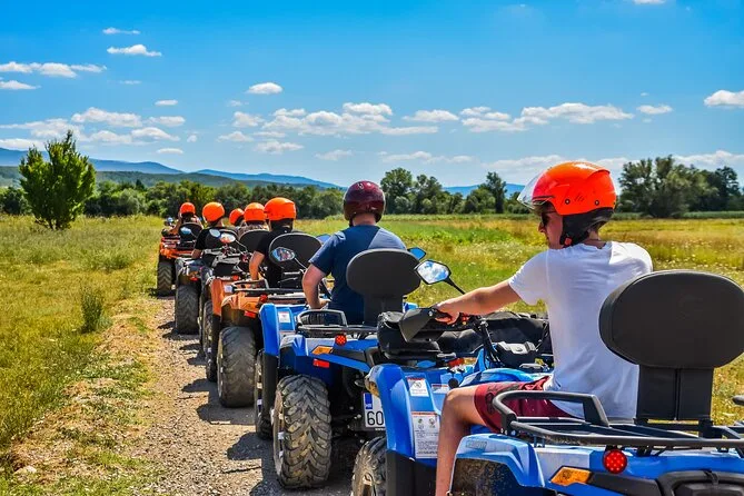 Dein Tag beinhaltet die Nutzung von CF Moto 450L Quads (Automatik), alle Sicherheitsausrüstungen wie Helme und bei Bedarf Regenkleidung, Begleitung durch einen erfahrenen lokalen Guide auf rund 40 Kilometern versteckter Wege bei Hrvace und am Cetina Fluss, Fotos während der Fahrt, eine Badepause im Fluss im Sommer sowie ein hausgemachtes Picknick mit Käse, Speck, Brot und Wasser in einer privaten Konoba vor der Rückfahrt.