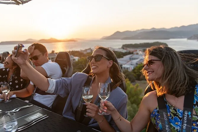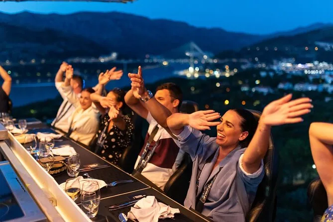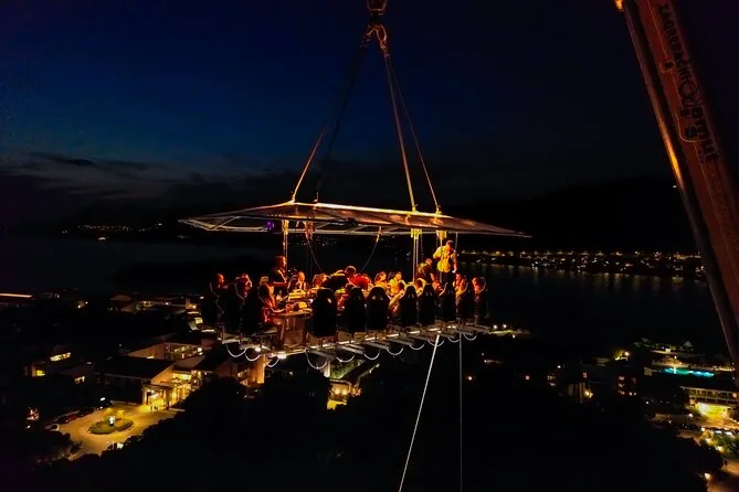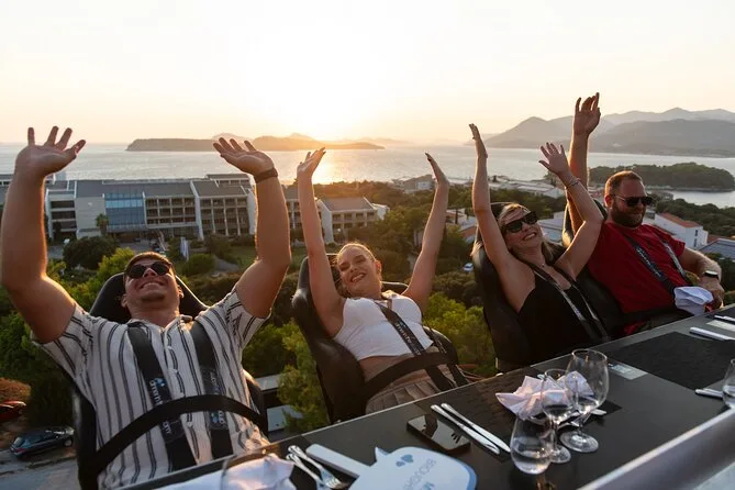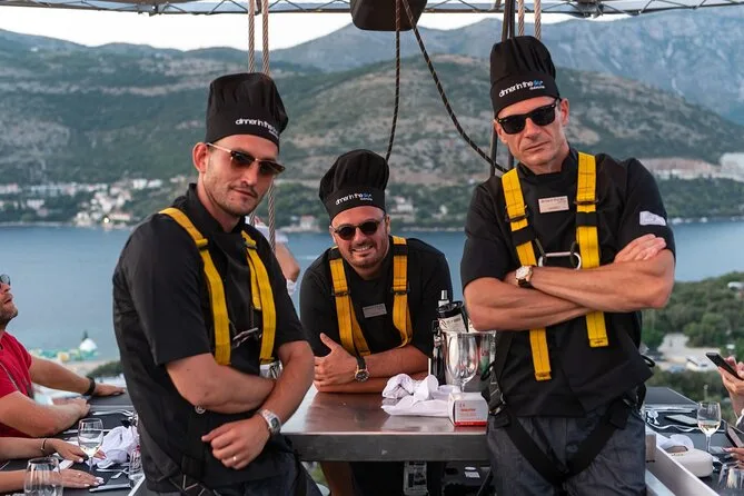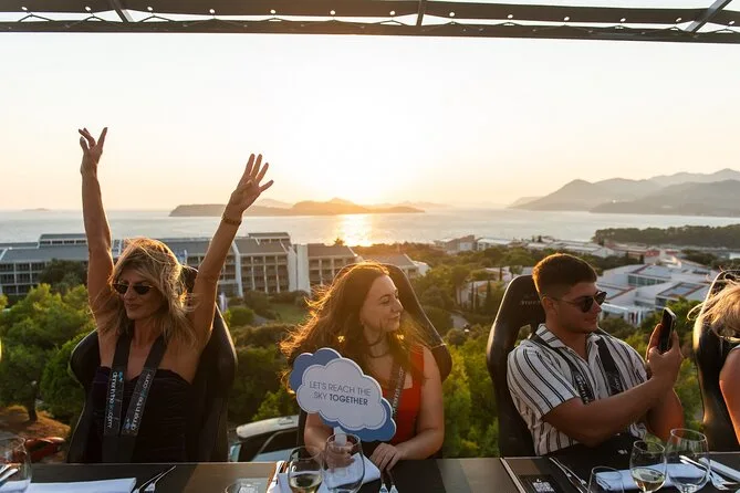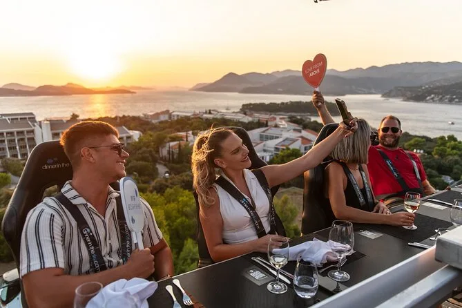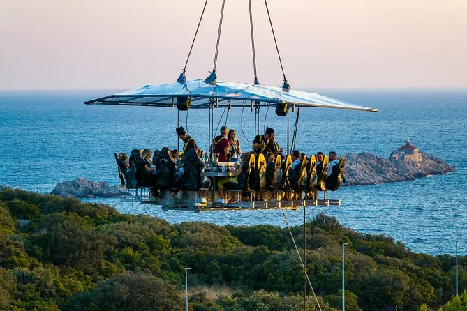 Du wirst 50 Meter über Dubrovniks Küste gehoben und genießt ein Abendessen mit Panorama, kroatischen Menüs von lokalen Köchen und unbegrenzt Wein oder Softdrinks. Freu dich auf Lachen mit anderen Gästen, spannende Geschichten vom Guide und Momente, die du lange nicht vergisst.