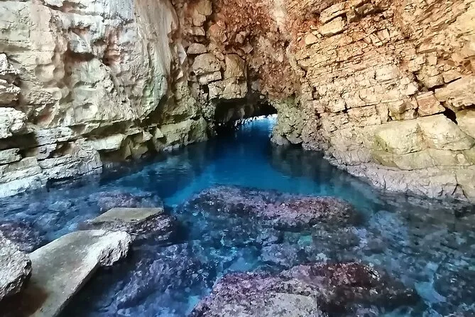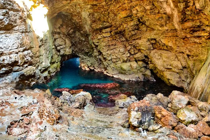 Die Odysseus-Höhle war viel beeindruckender, als ich erwartet hatte – man schwimmt unter einem steinernen Torbogen in kühle Schatten, und plötzlich leuchtet alles unter dir in einem intensiven Blau. Es war ein Moment der Stille, nur das Plätschern und das Echo von Lachen hallten von den Felswänden wider. Danach machten wir Halt in Šipanska Luka zum Mittagessen (Fischrisotto, wenn du neugierig bist; salzig, aber lecker), bevor es weiter zur Blauen Höhle auf Koločep ging. Meine Haut fühlte sich inzwischen zwar sonnenverbrannt, aber glücklich an.