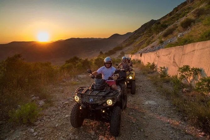 Dein Tag umfasst die Abholung und Rückfahrt vom Hotel in Dubrovnik, alle Sicherheitsausrüstungen wie Helme sowie Wasserflaschen während der Tour. Ein erfahrener Guide begleitet dich, während du mit den ATVs über Landstraßen und Offroad-Strecken fährst. Auf dem Srđ Hügel gibt’s einen Fotostopp mit Blick auf die Altstadt und Zeit für einen traditionellen Snack in einer rustikalen Taverne, bevor es staubig, aber glücklich zurückgeht.