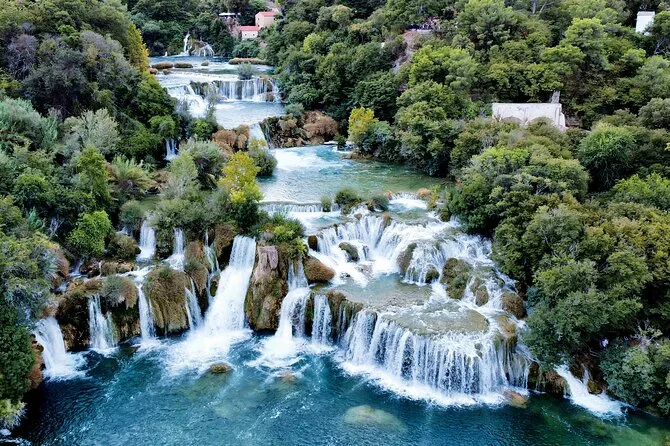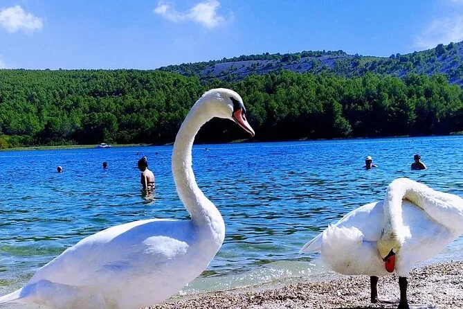 Dein Tag startet mit der Fahrt von Split zu den Krka-Wasserfällen – spüre den Sprühnebel beim Spaziergang über die Holzstege am rauschenden Wasser. Danach geht’s nach Skradin zur Weinprobe mit Käse und Geschichten von einem echten Winzer. Zum Abschluss kannst du am Flussstrand schwimmen, wo der Fluss aufs Meer trifft. Alles wirkt entspannt, aber bleibt lange im Kopf.