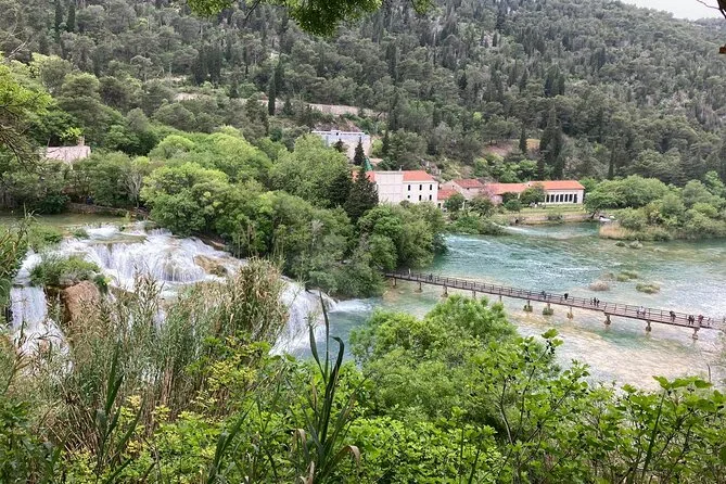 Dein Tag umfasst bequemen Transport von Split mit WLAN im Bus, einen englischsprachigen Guide mit spannenden Geschichten, vergünstigten Eintritt zu Krka (separat zu zahlen), Snacks unterwegs, eine geführte Wanderung zu den Wasserfällen, einen Besuch im Weingut Sladić mit Wein-, Käse- und Olivenölverkostung sowie Freizeit in Skradin, bevor es nach dem Schwimmen am Flussstrand zurückgeht.