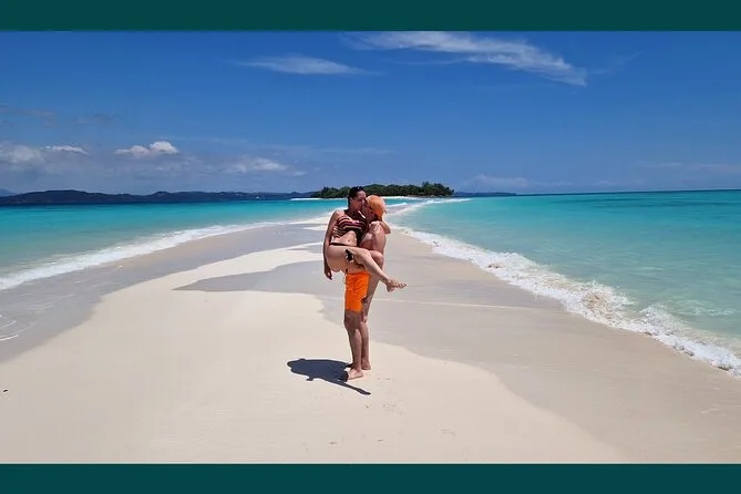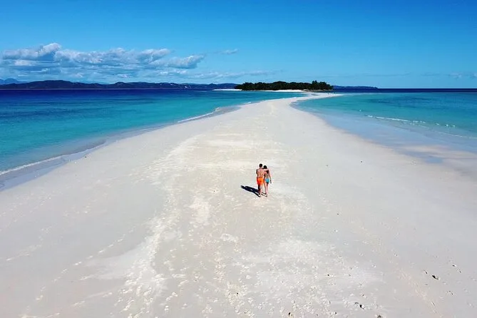 Mit dem Boot geht’s nach Nosy Iranja, barfuß über die berühmte Sandbank, schnorcheln mit Schildkröten und bunten Korallen, dann echtes malagasy Essen unter Kokospalmen mit Einheimischen – alles mit deinem persönlichen Guide, der dafür sorgt, dass du nichts verpasst.