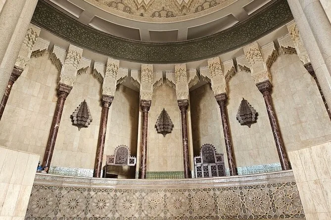 Erlebe Casablancas Kontraste: stille Marmorsäle in der Hassan-II-Moschee, bunte, lebhafte Medina-Gassen und frisch gebackene Leckereien aus der Ecke. Mit Abholung vom Hotel und einem lokalen Guide wechselst du mühelos von beeindruckender Architektur zum pulsierenden Straßenleben.