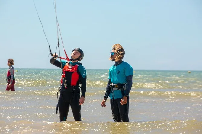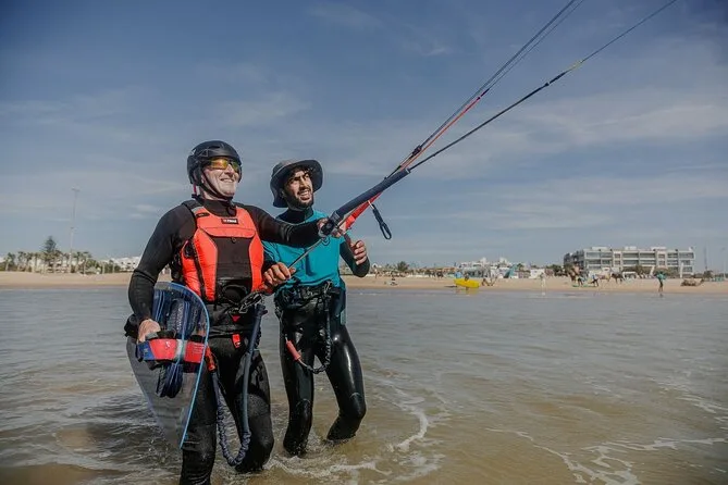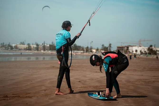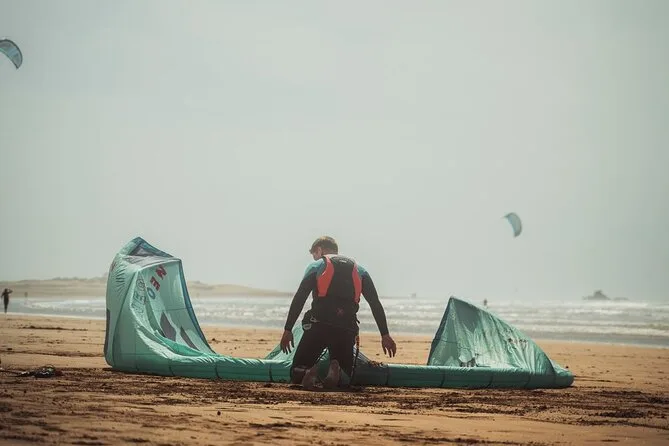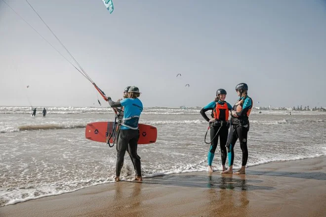Deine Session beinhaltet die Nutzung der neuen Kitesurf-Ausrüstung direkt am Strand von Essaouira; du triffst deinen Lehrer dort und bekommst eine auf dein Level abgestimmte Betreuung – egal ob Einsteigerkurs oder mehrere Stunden Fortgeschrittenentraining.