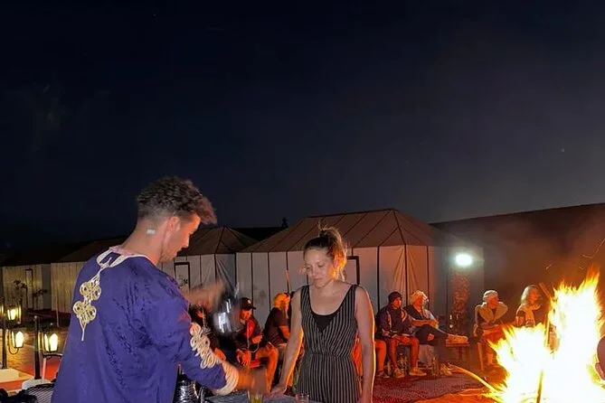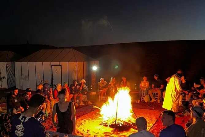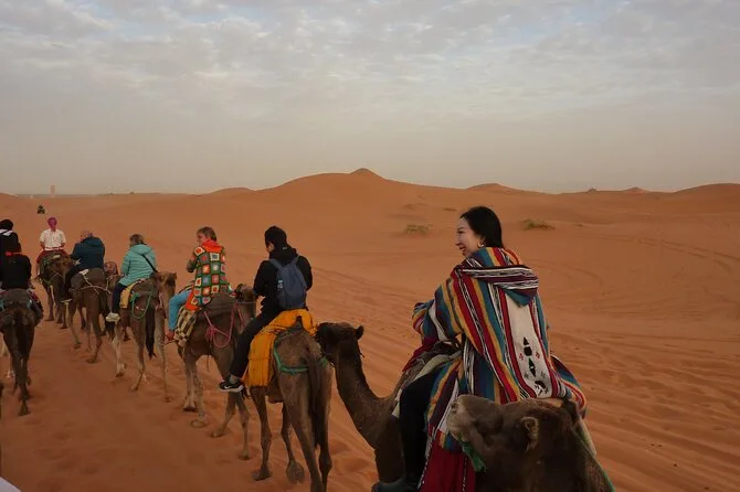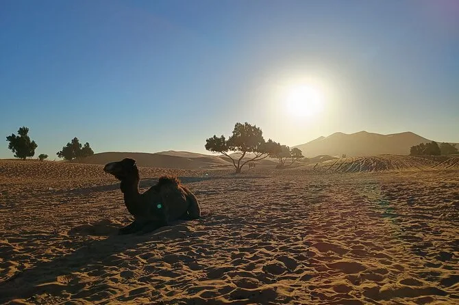 Ja, du verbringst eine Nacht in einem luxuriösen Zeltcamp mitten in den Dünen von Merzouga – inklusive Kamelritt zum Sonnenuntergang.