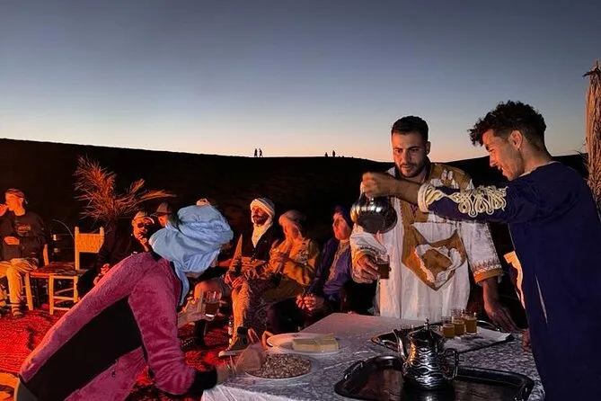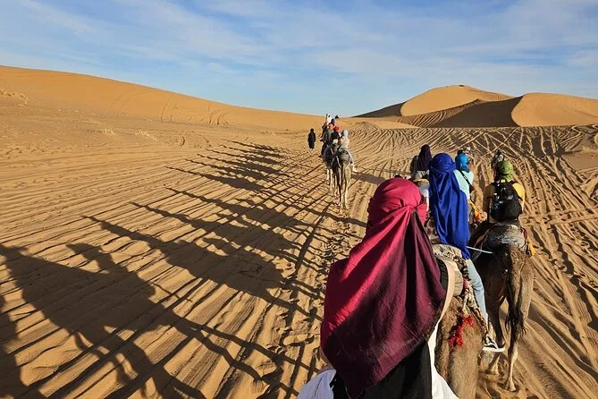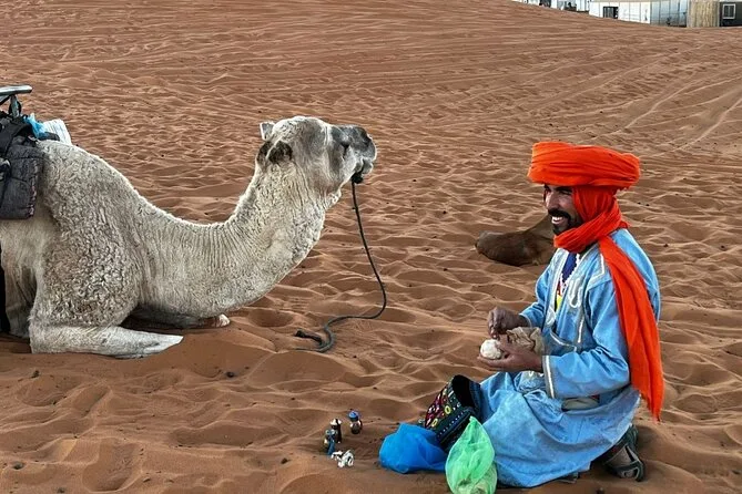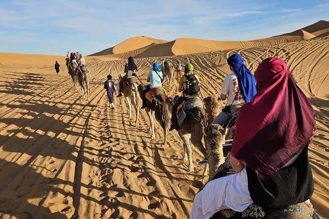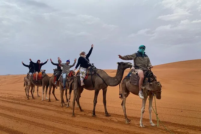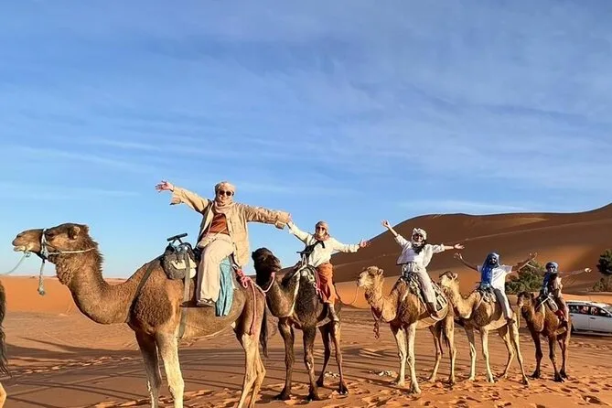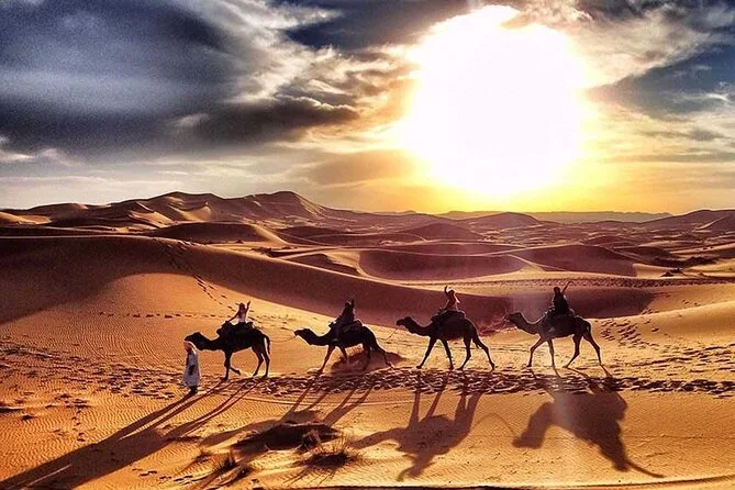 Im Preis enthalten sind: Abholung am Flughafen Casablanca, komfortabler Transport inklusive Sprit, neun Übernachtungen in Riads/4-Sterne-Hotels sowie eine Nacht im luxuriösen Zeltcamp in den Dünen von Merzouga, geführte Stadttouren in Fes und Marrakesch, Kamelritte bei Sonnenuntergang und Sonnenaufgang, Sandboarding, viele Gelegenheiten, marokkanische Spezialitäten zu probieren, sowie der Rücktransfer zum Flughafen Casablanca oder Marrakesch – je nach deinem Rückflug.