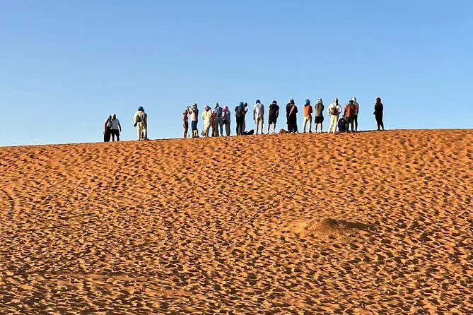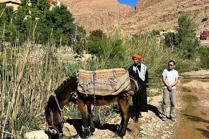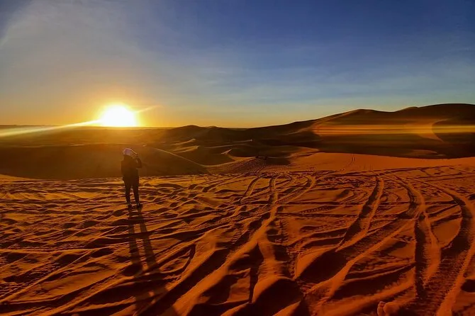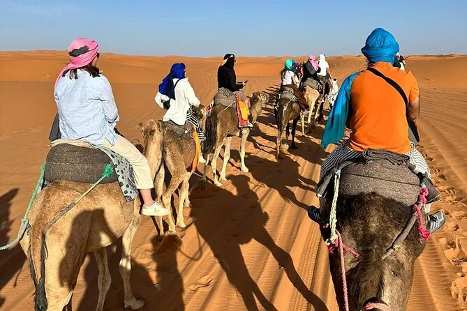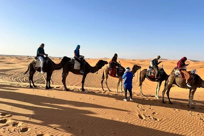 Deine drei Tage beinhalten die Abholung vom Riad oder Hotel in Marrakech, bequemen Transport mit professionellem Fahrer (inklusive Sprit), zwei Übernachtungen – eine im Hotel nahe Tinghir mit Abendessen und Frühstück, eine Nacht im Berberzeltcamp – sowie Kamelritte bei Sonnenuntergang und Sonnenaufgang über die Erg Chebbi Dünen. Sandboarding-Ausrüstung steht im Camp bereit, bevor es komfortabel zurück nach Marrakech geht.