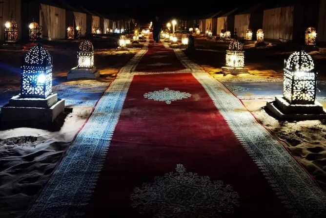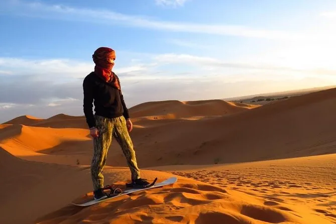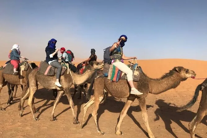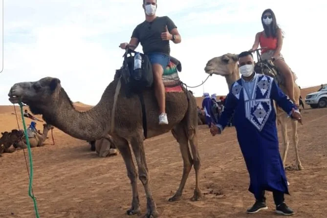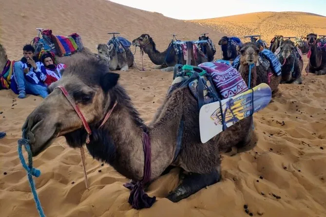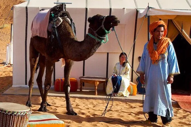 Deine Reise beinhaltet die Abholung vom Riad oder Hotel in Marrakech mit einem klimatisierten Minibus (inkl. Kraftstoff), alle Transfers zwischen den Stopps inklusive der Atlaspässe, eine Nacht im Hotel Saghro (oder ähnlich) in Tinghir mit Abendessen und Frühstück, eine Nacht im Berber-Wüstencamp in Merzouga mit Abendessen, Frühstück und Trommelmusik am Lagerfeuer, geführte Kamelritte bei Sonnenuntergang und Sonnenaufgang (jeweils ein Kamel pro Person), Sandboarding auf den Erg Chebbi Dünen – und unterwegs gibt’s reichlich Minztee, bevor du spät abends wieder in Marrakech abgesetzt wirst.