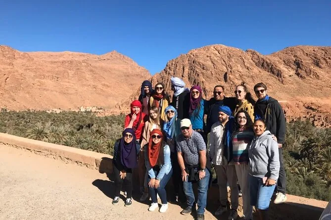 Die Fahrt ist auf zwei Tage mit Zwischenstopps aufgeteilt; insgesamt sind es etwa 560 km pro Strecke mit Übernachtungen in Tinghir und Merzouga.
