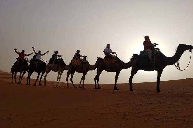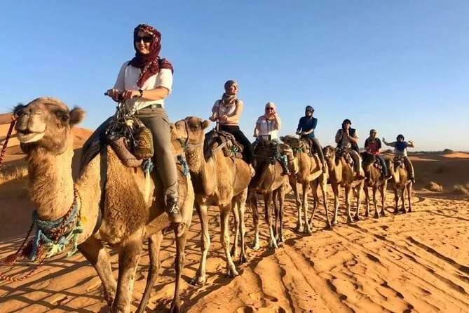 Ja, Kamelritte bei Sonnenuntergang und Sonnenaufgang in Merzouga sind inklusive – jeder bekommt ein eigenes Kamel.