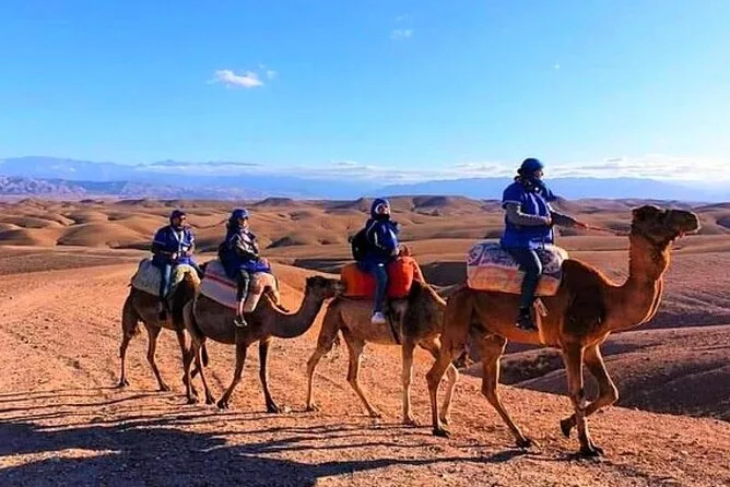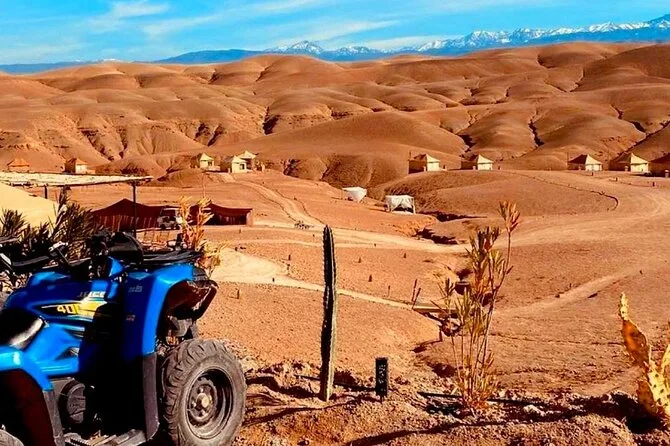 Dein Tag startet mit bequemer Abholung vom Hotel in Marrakesch, geführter Quad-Tour über Agafays felsiges Gelände inklusive kompletter Ausrüstung, einer kurzen Kamelritt mit erfahrenen Einheimischen und einem traditionellen marokkanischen Mittagessen mit viel Minztee, bevor es gemeinsam zurück in die Stadt geht.